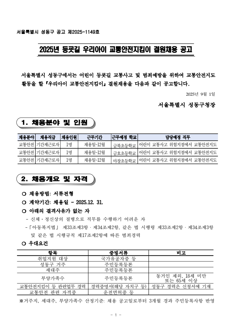 | 직종 | 직종교통안전지킴이(공공일자리) |