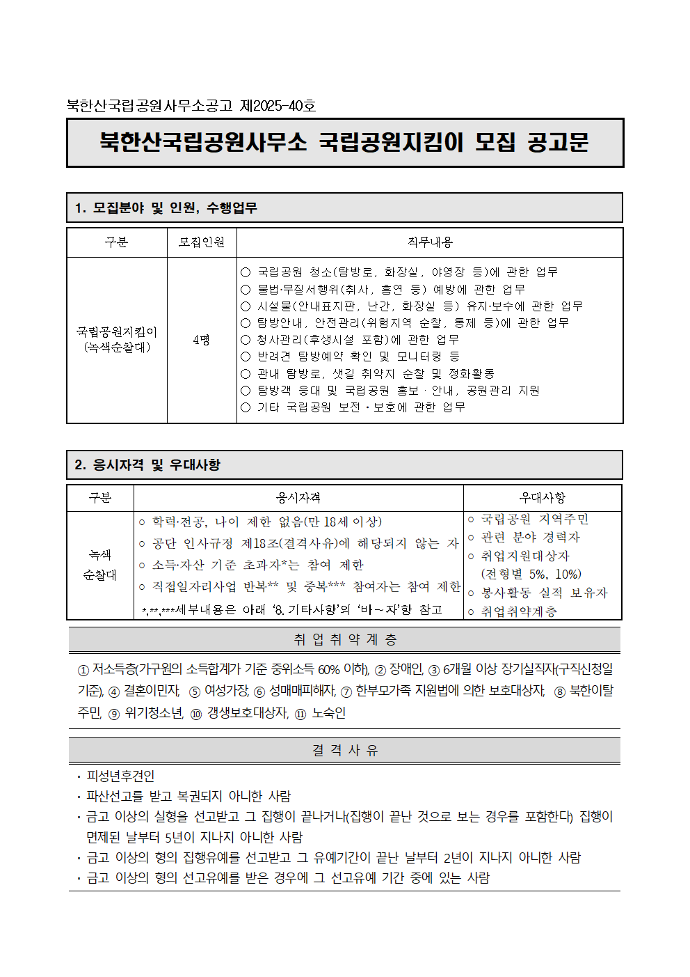 | 직종 | 직종국립공원지킴이(녹색순찰대) | |||