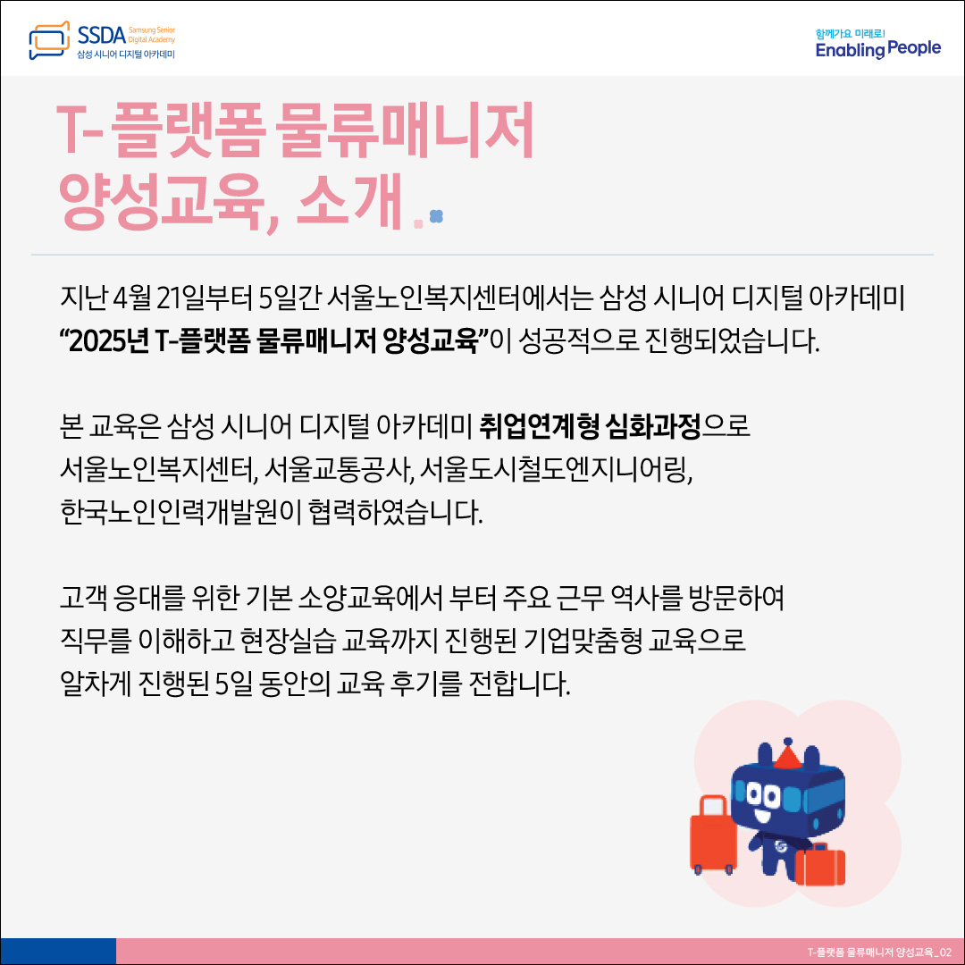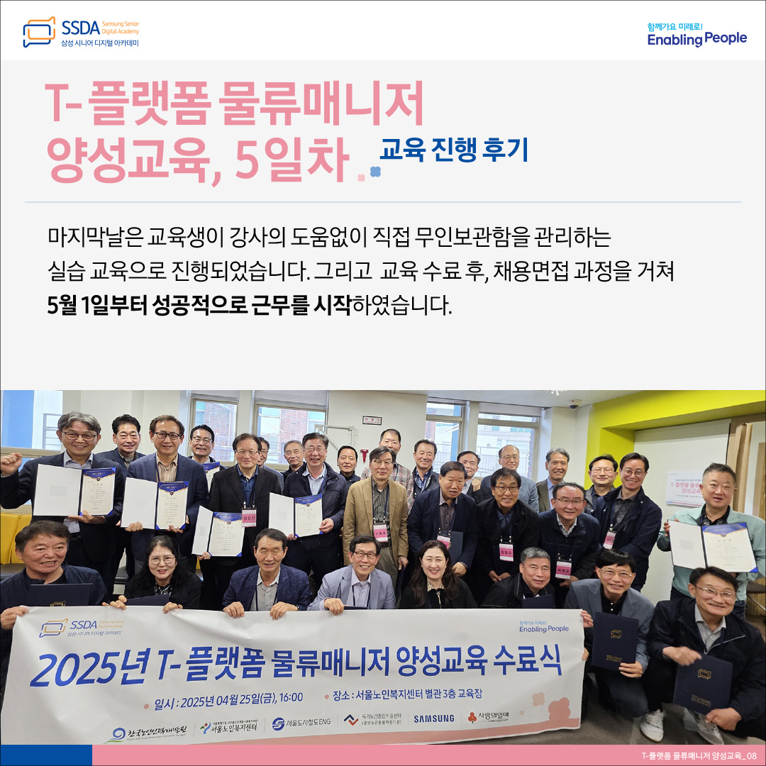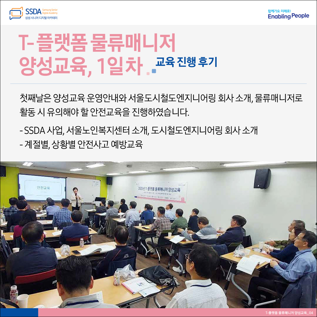 삼성 시니어 디지털 아카데미 “2025년 T-플랫폼 물류매니저 양성교육”이