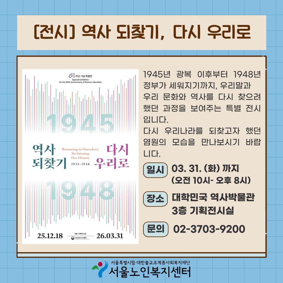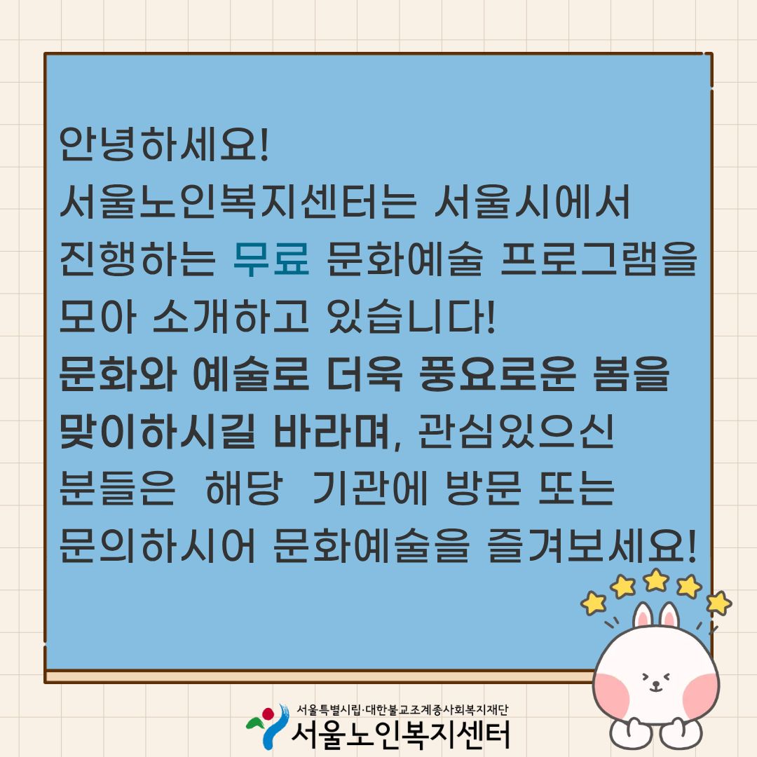 [평생교육팀] 서울노인복지센터가 추천하는 3월 문화예술 프로그램