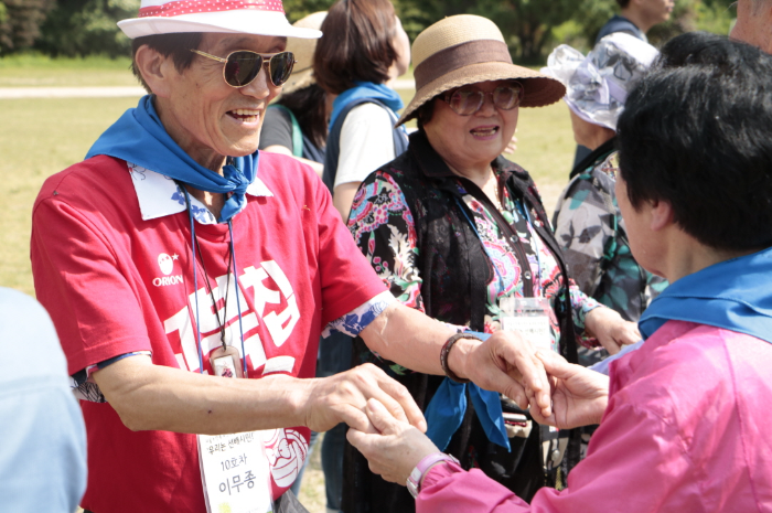 팝송동아리에서는 “오늘처럼 이렇게 많은 인원이 야외에 나와서도 질서정연하게 서로 도와가며 다는 것이야말로 선배시민이다”라며 선배시민 정신을 강조해주셨습니다. 홍백동아리에서는 “건강이 최고다! 홍백과 함께하면 건강한 노년을 만들 수 있으니 함께하자”며 힘차게 외쳐주셨습니다.