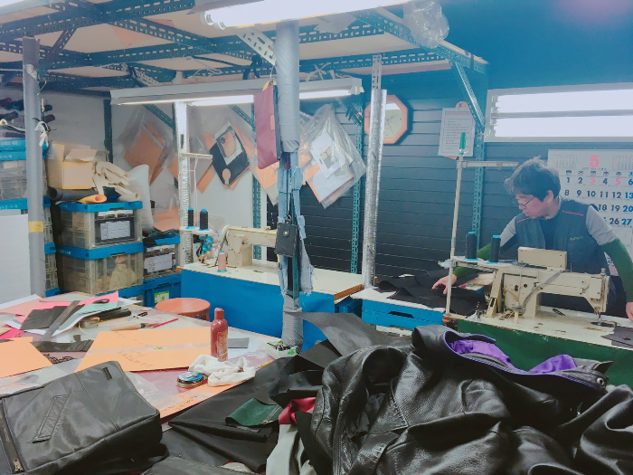 작업실에서는 가죽 자켓의 모습을 그대로 간직한 가방이 만들어지기도 하고,