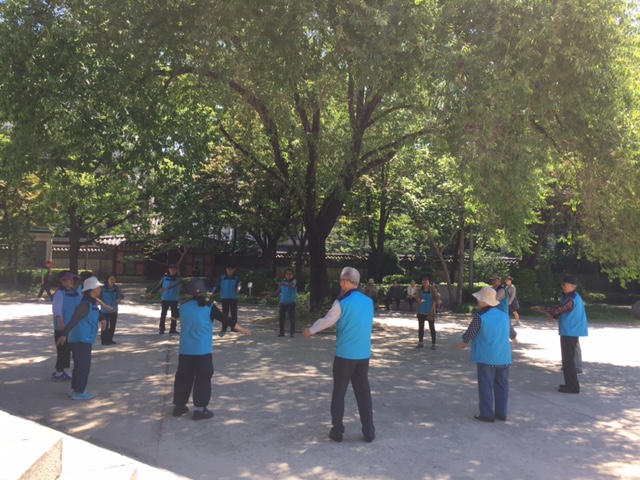 여름으로 접어들고 있어 날씨가 아주 맑고, 나무 그늘 아래의 선선한 바람이 불고 있어 야외활동 하기 딱 좋은 날씨입니다~! 이러한 날씨에 맞게 저희 서울노인복지센터의 공익활동 건강지킴이는 6월부터 탑골공원 야외활동이 본격적으로 시작되었습니다.
