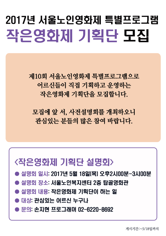 [사회참여과] 제10회 서울노인영화제 특별프로그램 <작은영화제 기획단> 설명회