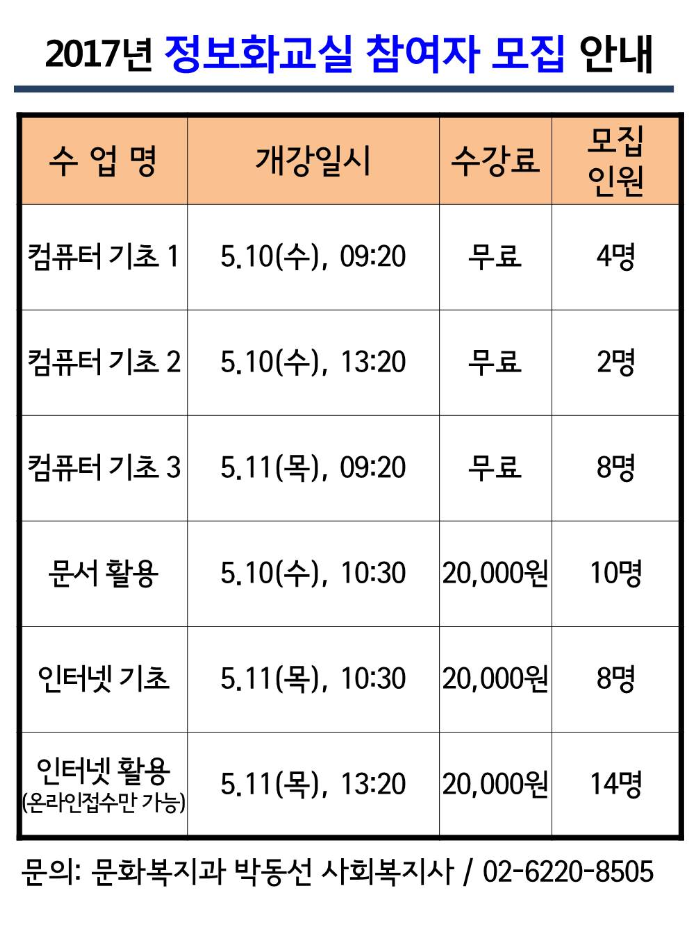 [문화복지과]정보화교실 프로그램 참여자 모집 안내