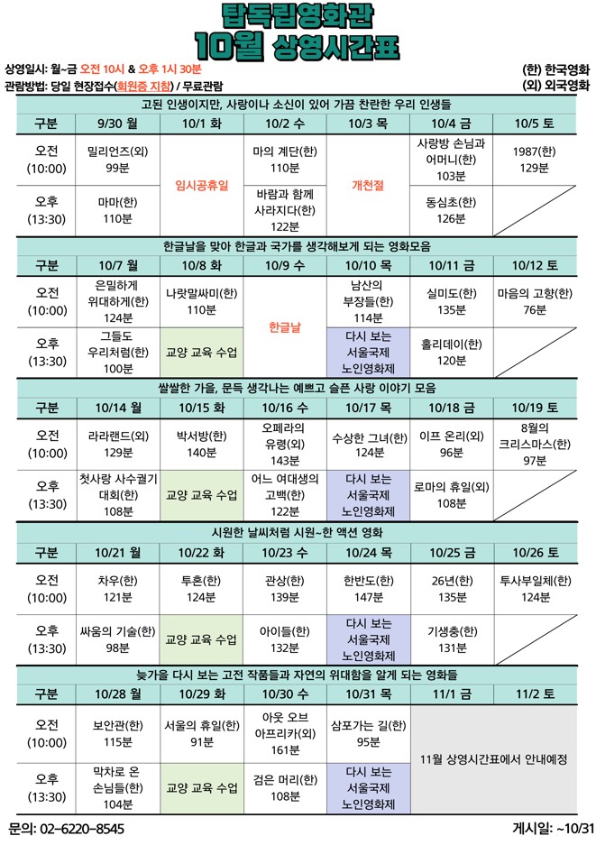 [평생교육팀] 10월 영화 상영 안내