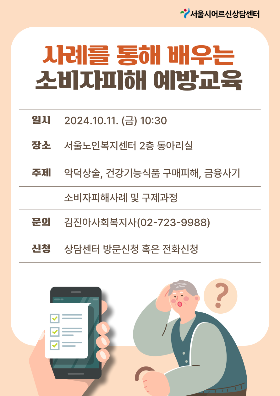 [상담센터] 10월 노년기 소비자피해 예방교육 참여자 모집 안내