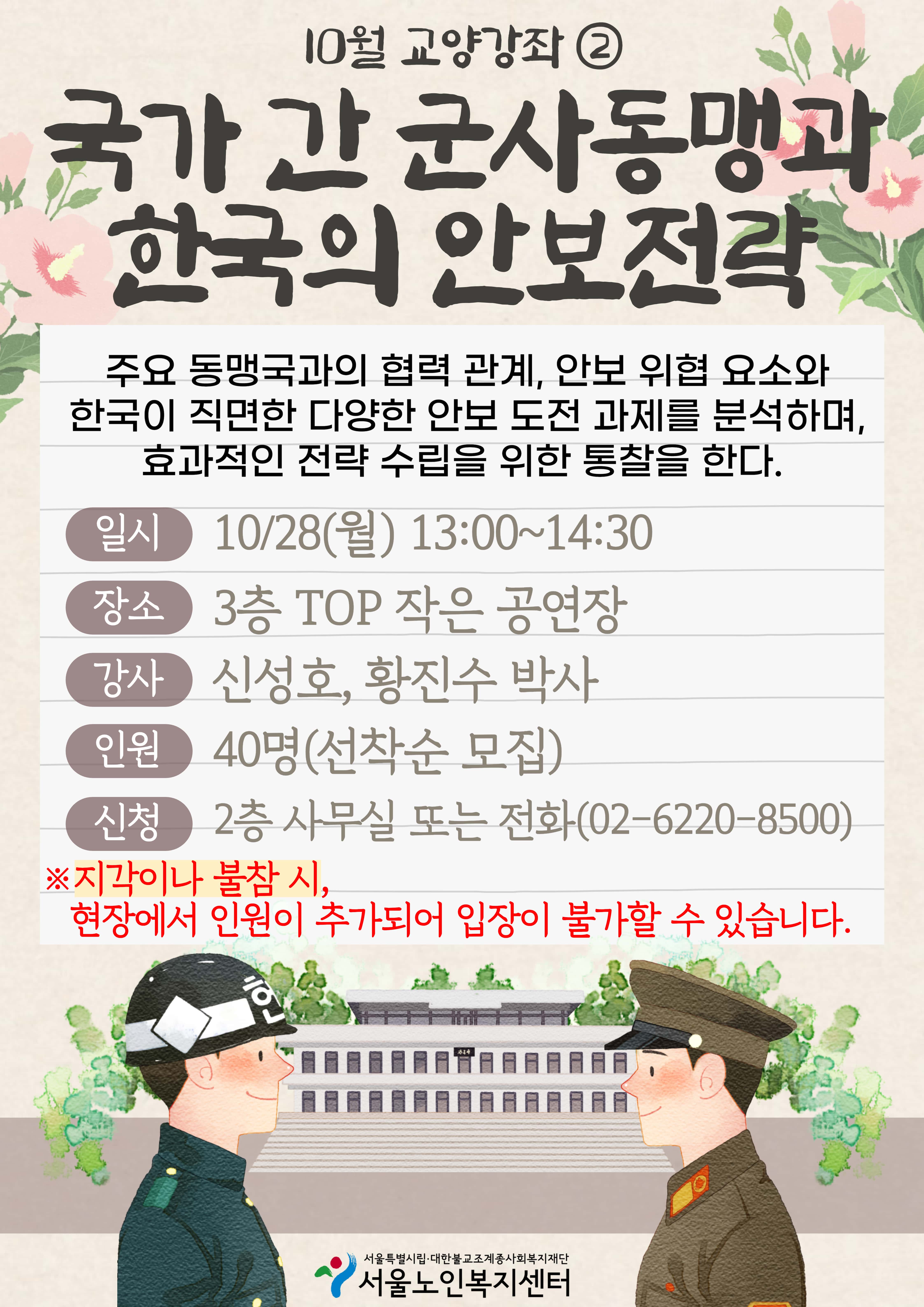 [평생교육팀] 10월 교양강좌2 '국가 간 군사동맹과 한국의 안보전략'