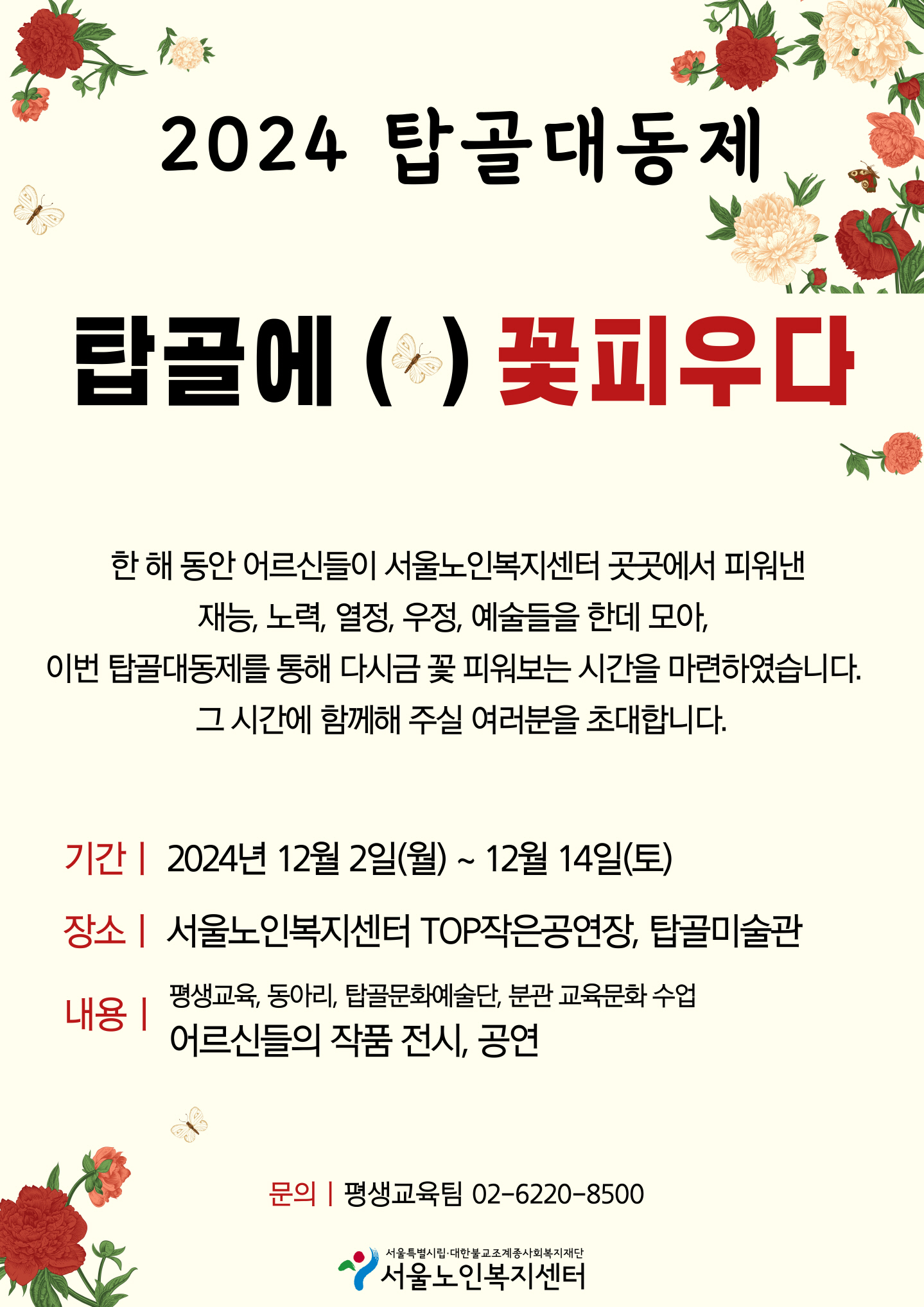 | 2053 | [세대통합팀] 2025 탑골기획전 '한땀한결' 인문학 특강 참여자 모집 |