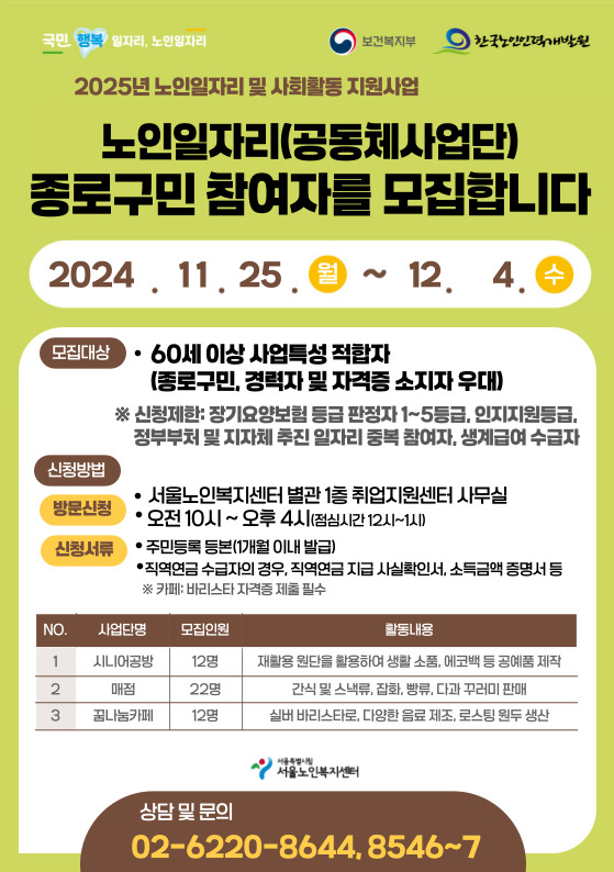 [취업알선팀] 2025년 노인일자리 및 사회활동지원사업 참여자를 모집합니다. (1차모집)
