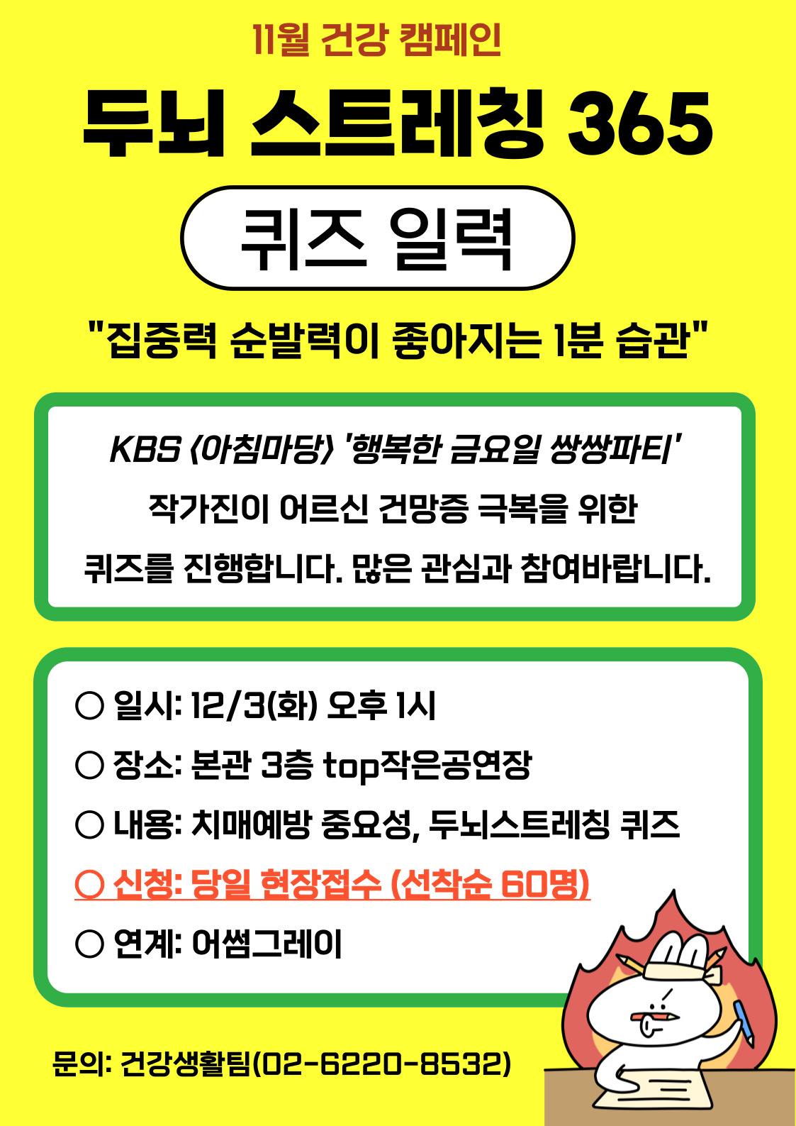 [건강생활팀] 11월 건강캠페인 - 두뇌 스트레칭 365 퀴즈일력 참여 안내
