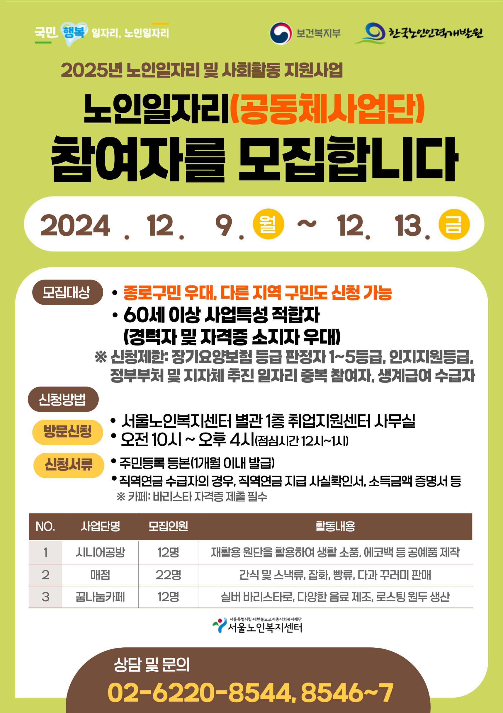 [취업알선팀] 2025년 노인일자리 및 사회활동지원사업 참여자를 모집합니다.