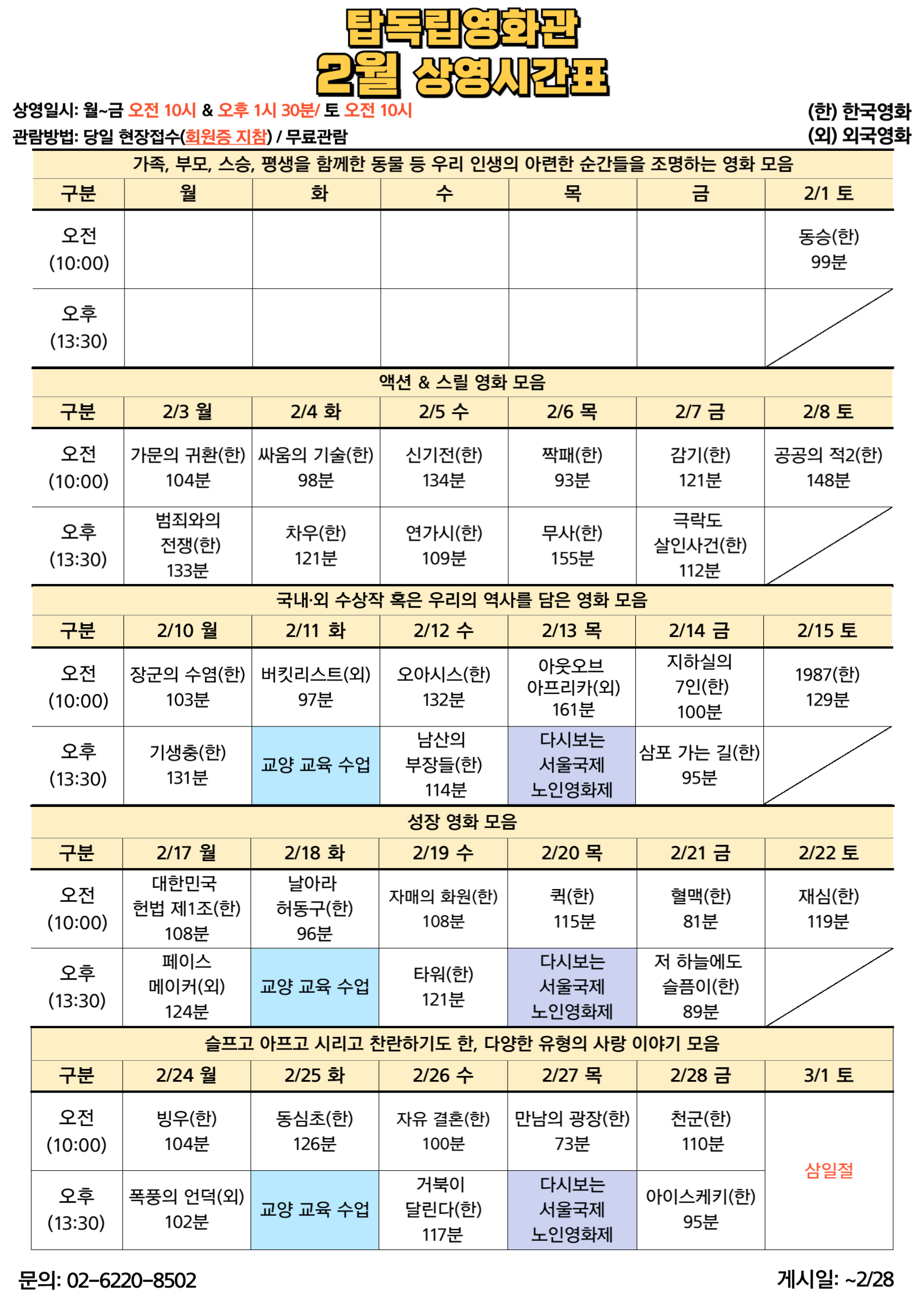 [평생교육팀] 2025년 2월 영화 상영 안내