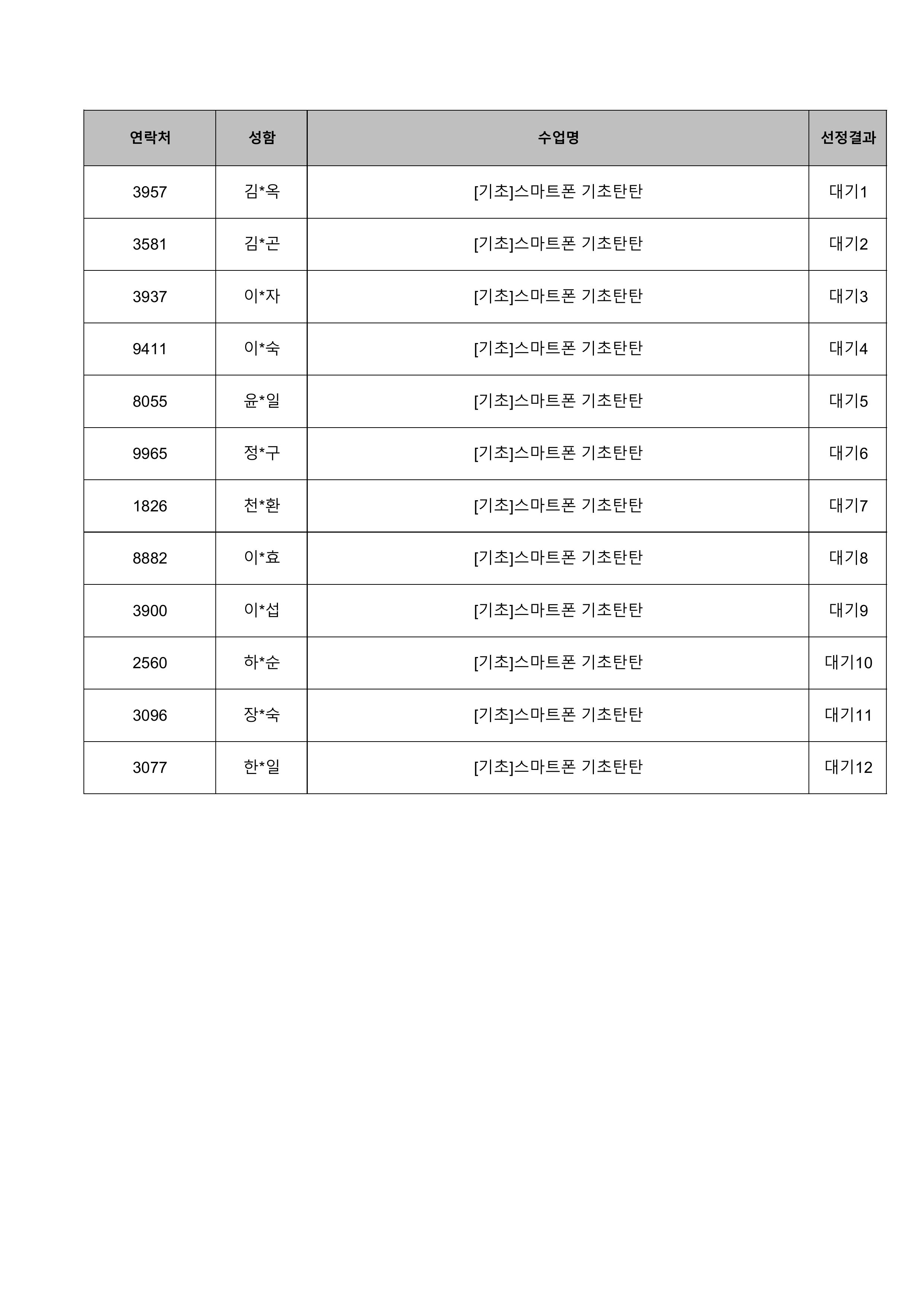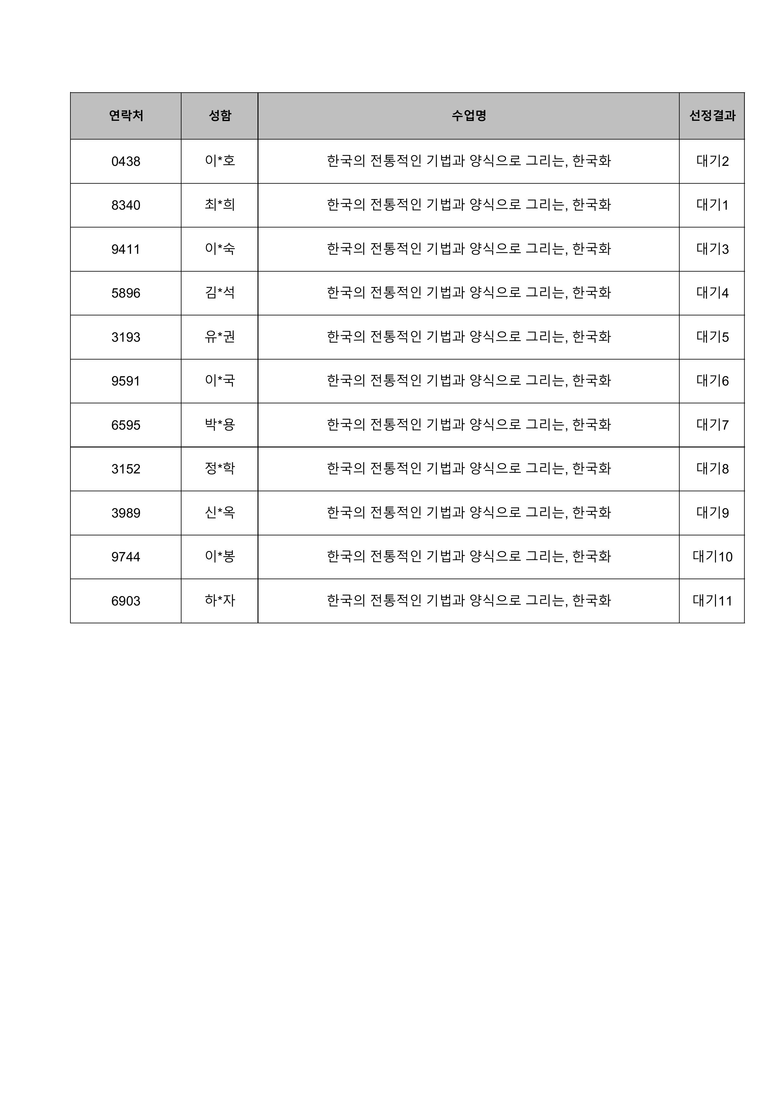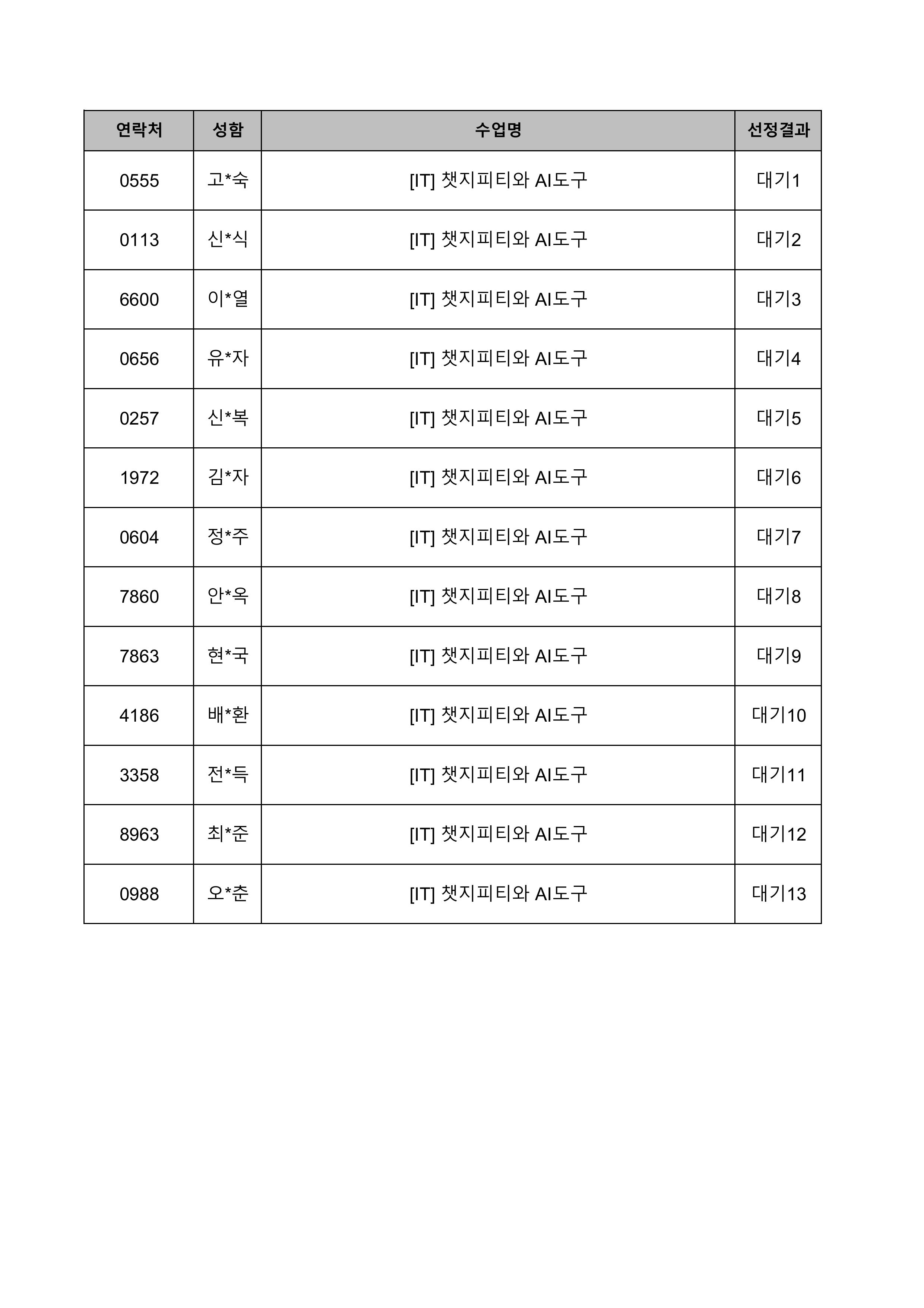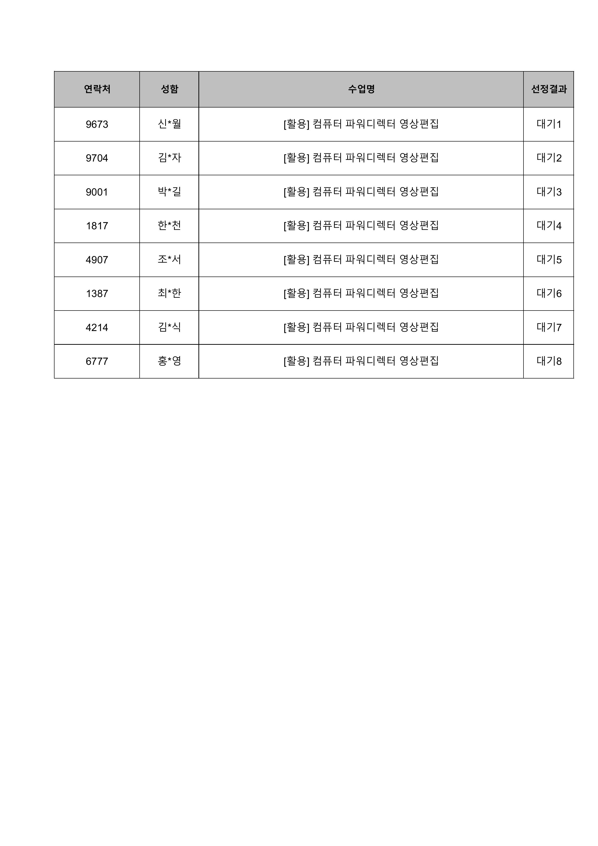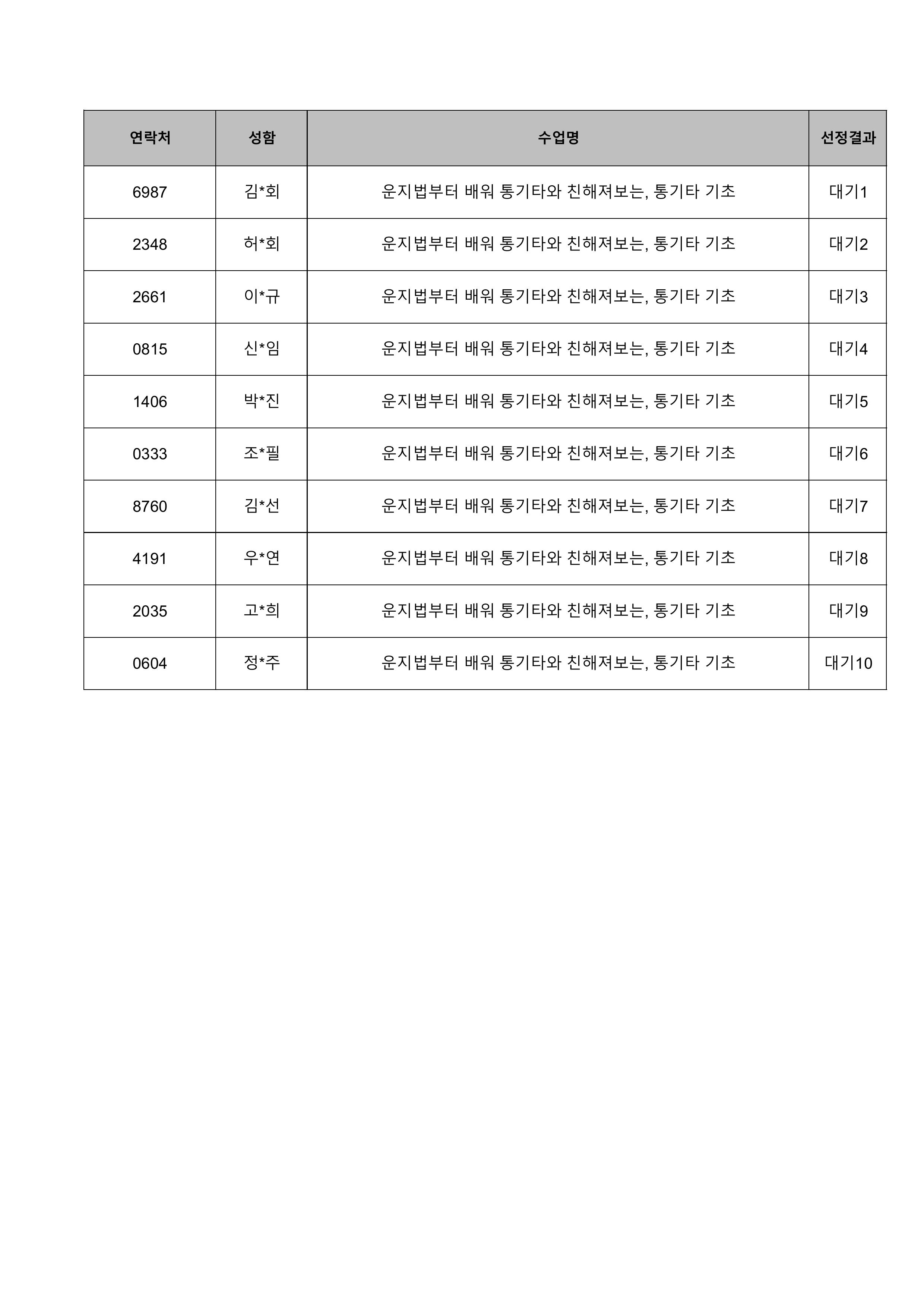 1. 대기자의 경우 선정자가 수강을 취소하는 경우 추가 선정됩니다.