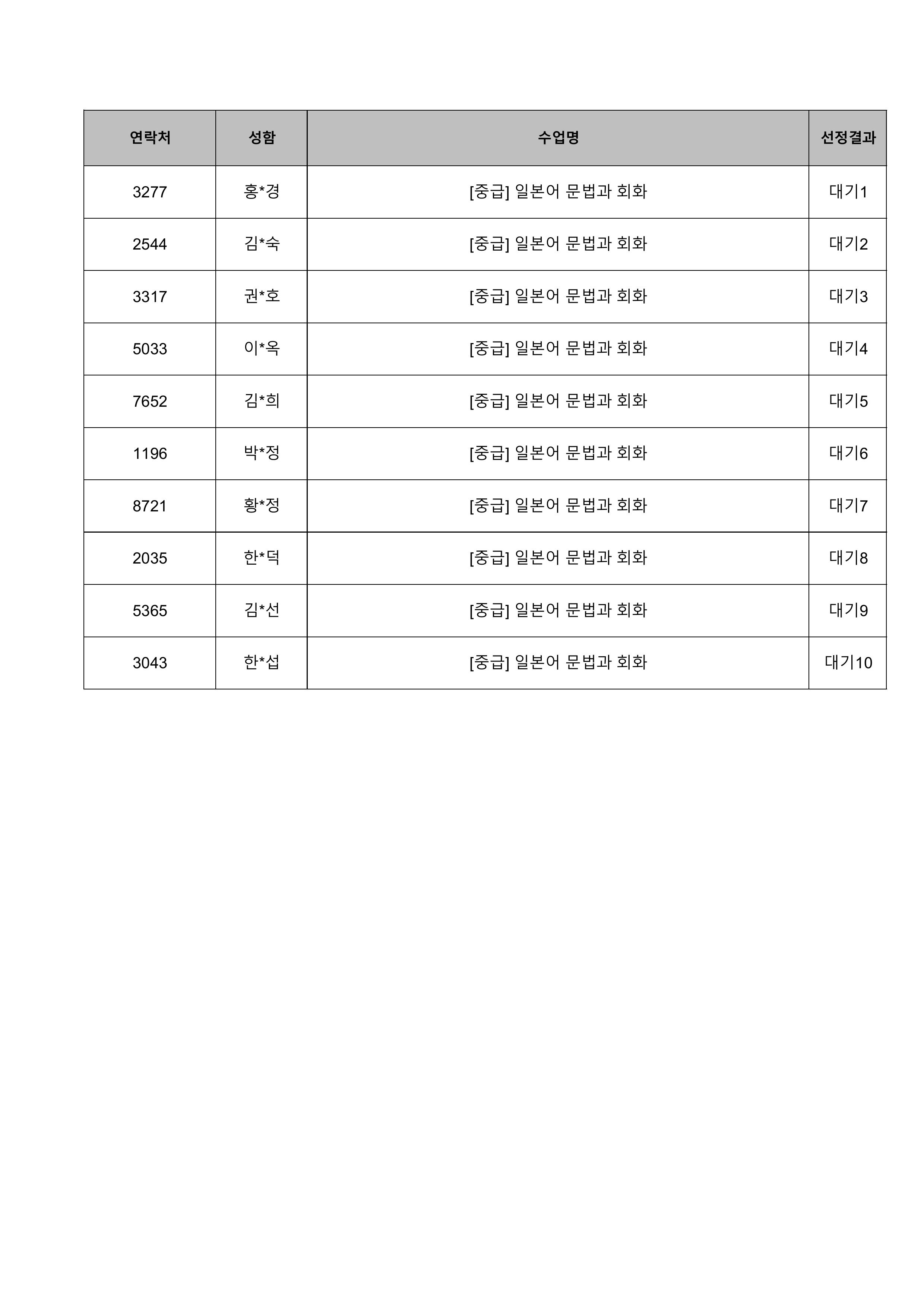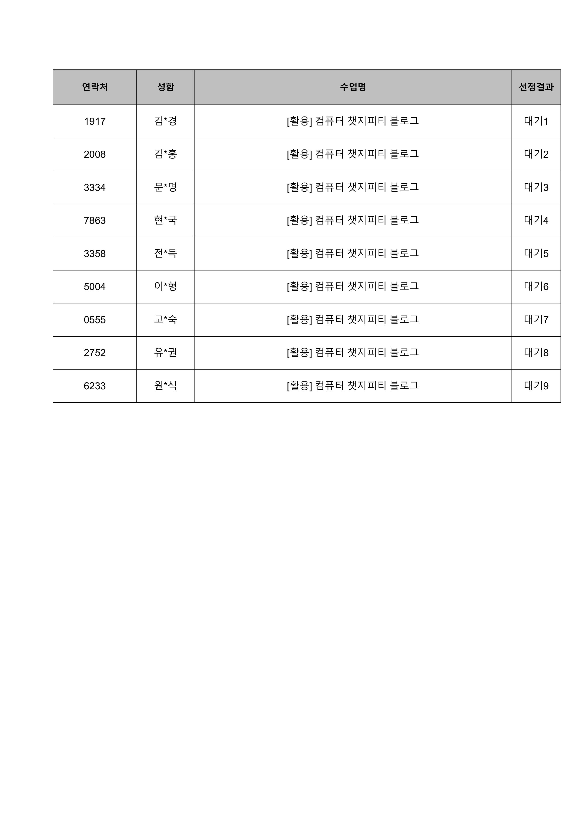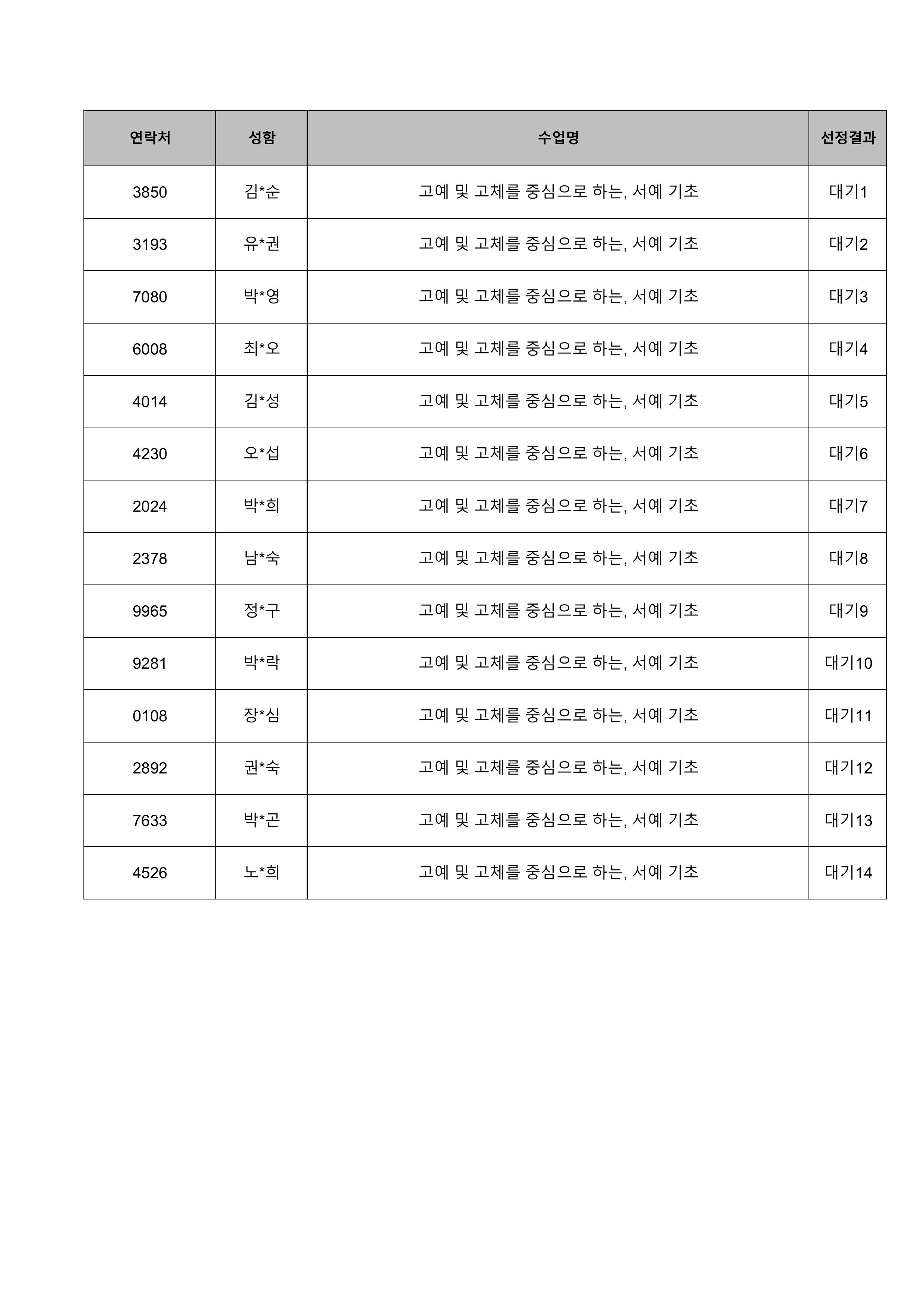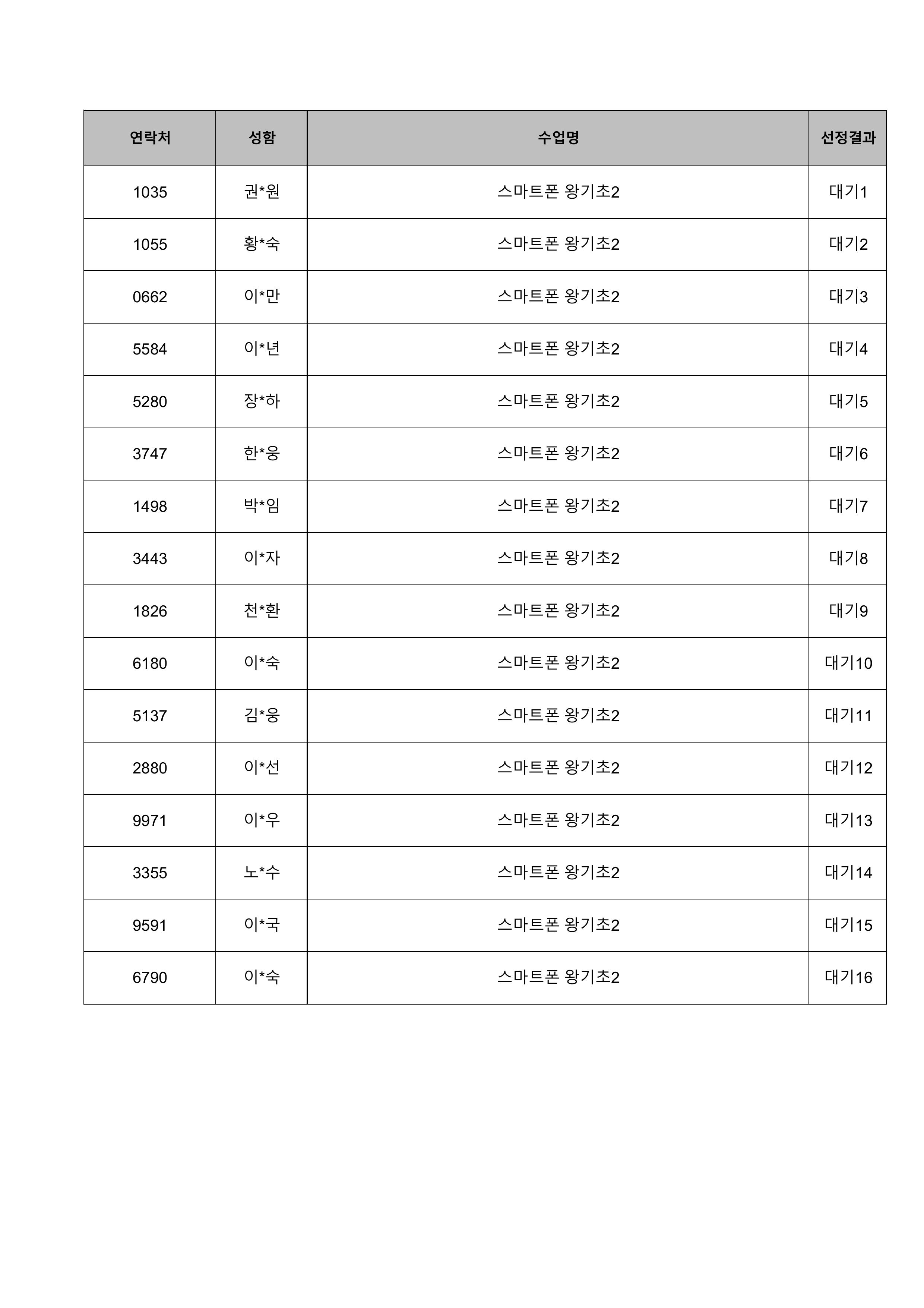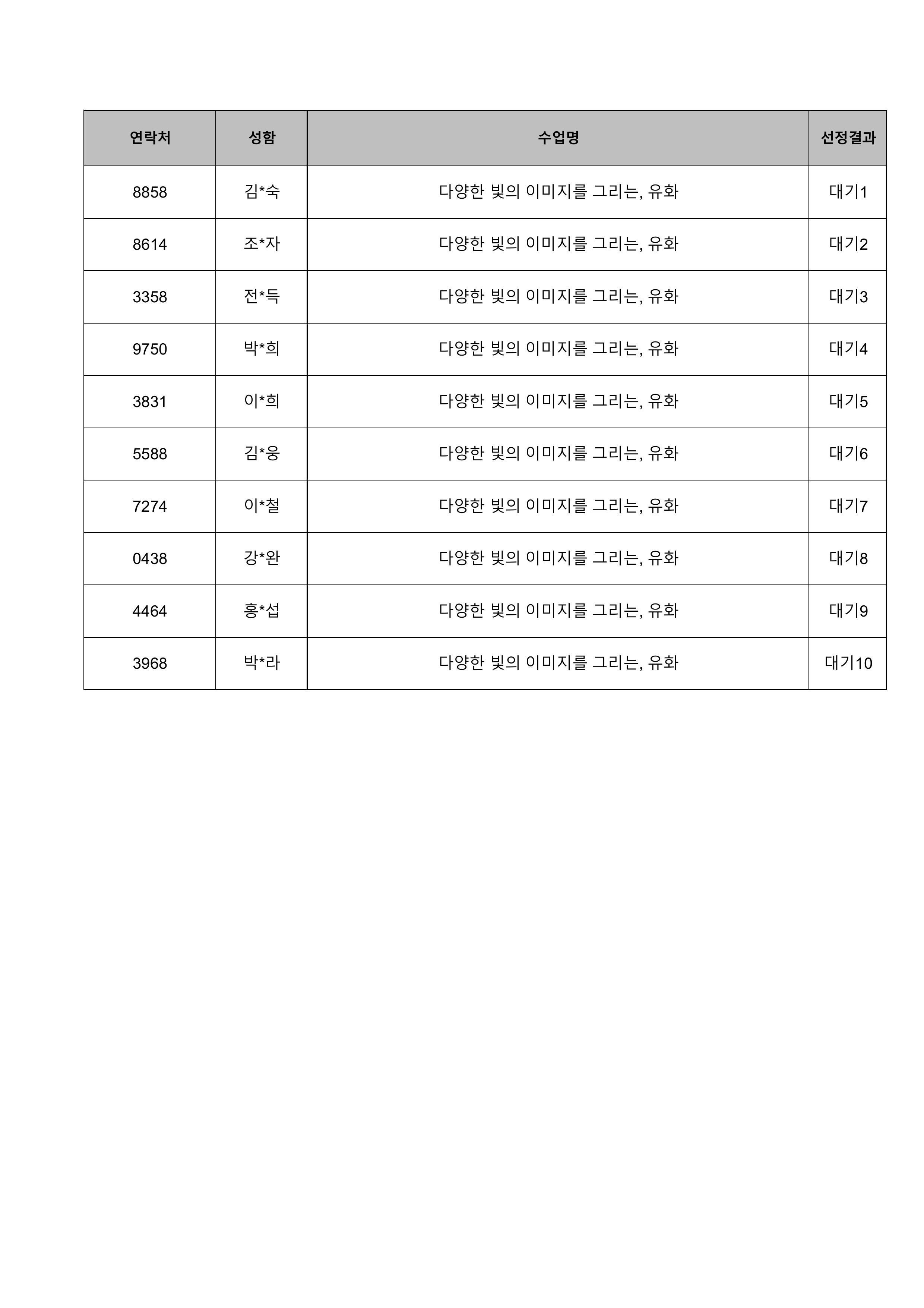 1. 대기자의 경우 선정자가 수강을 취소하는 경우 추가 선정됩니다.