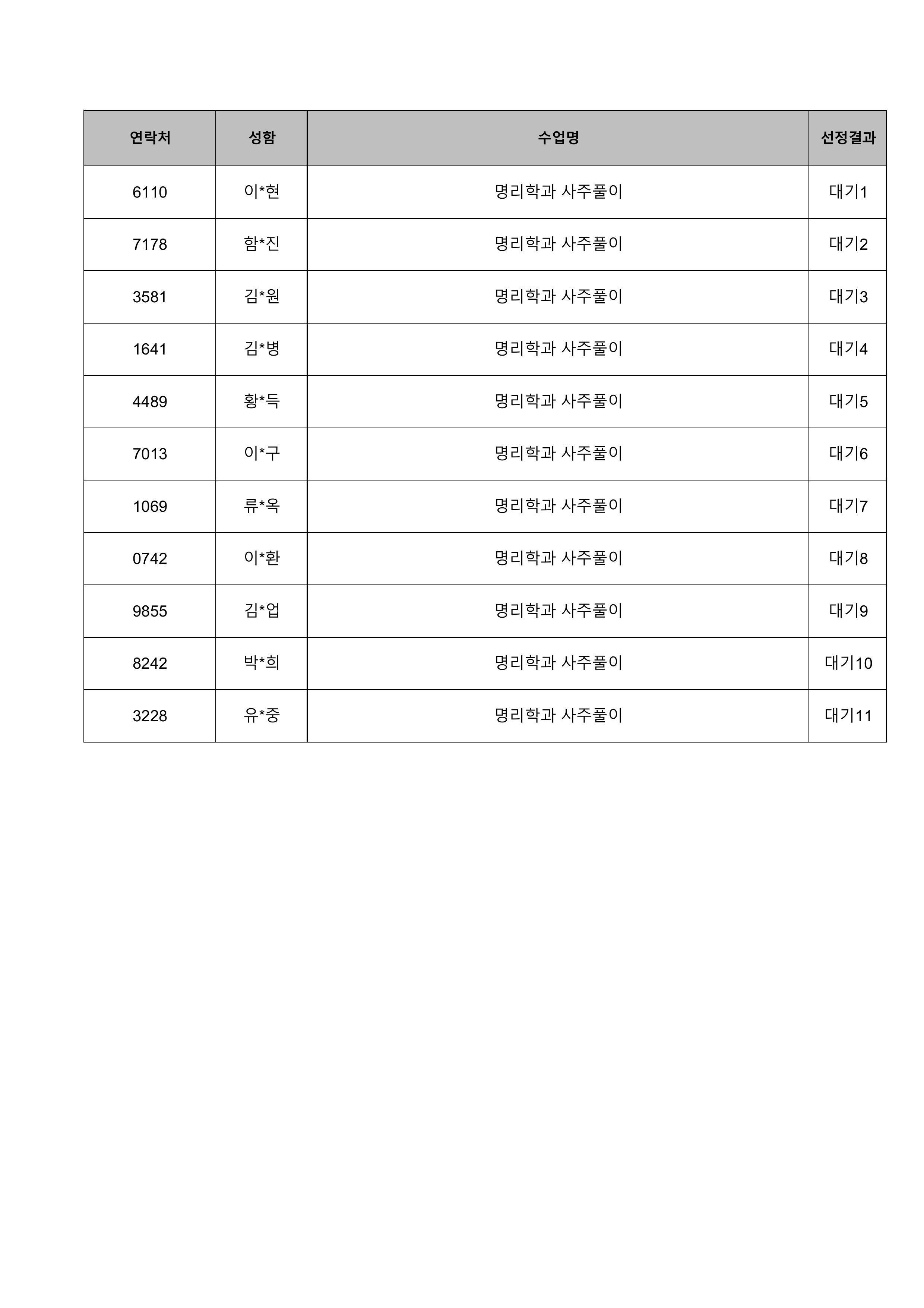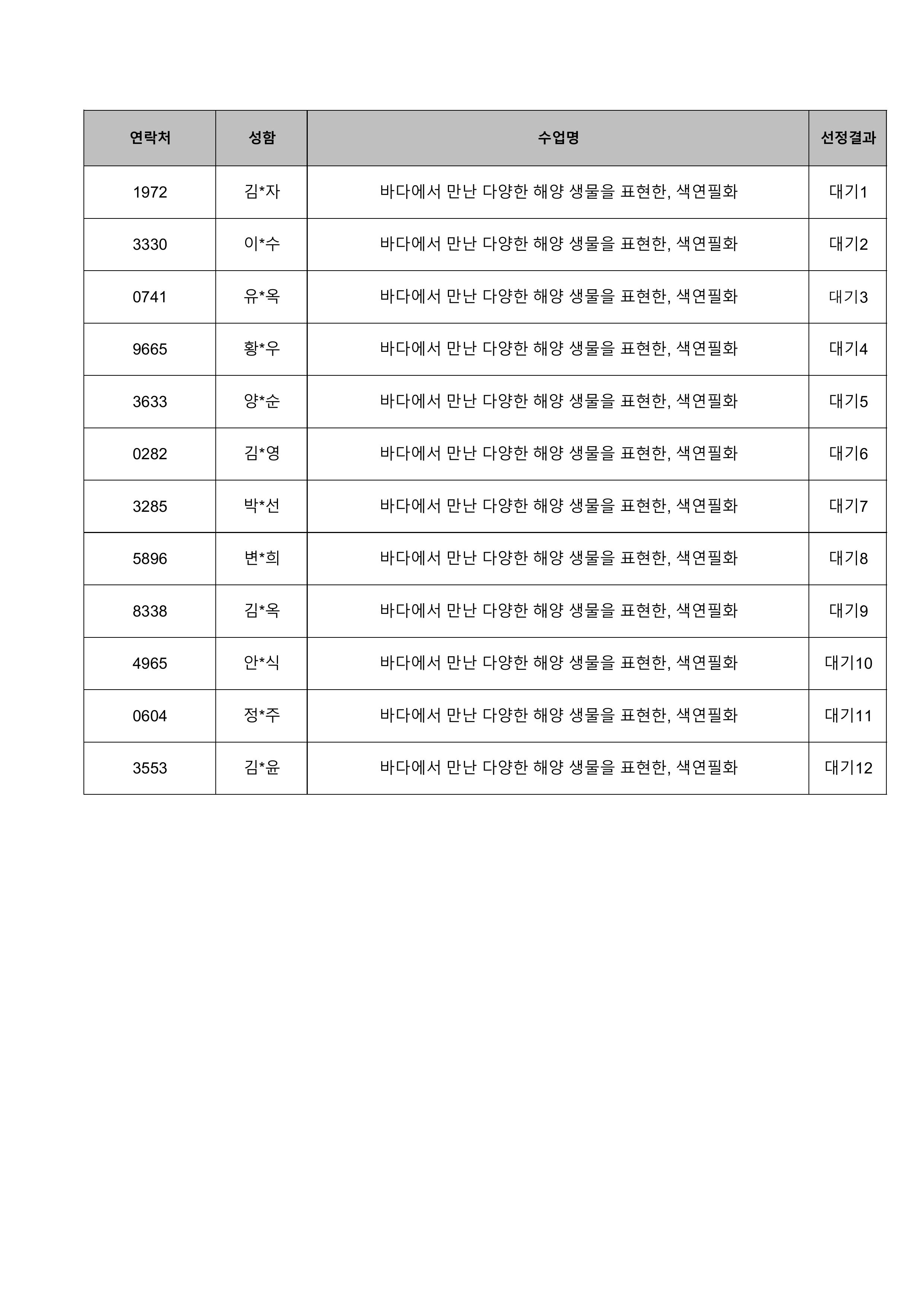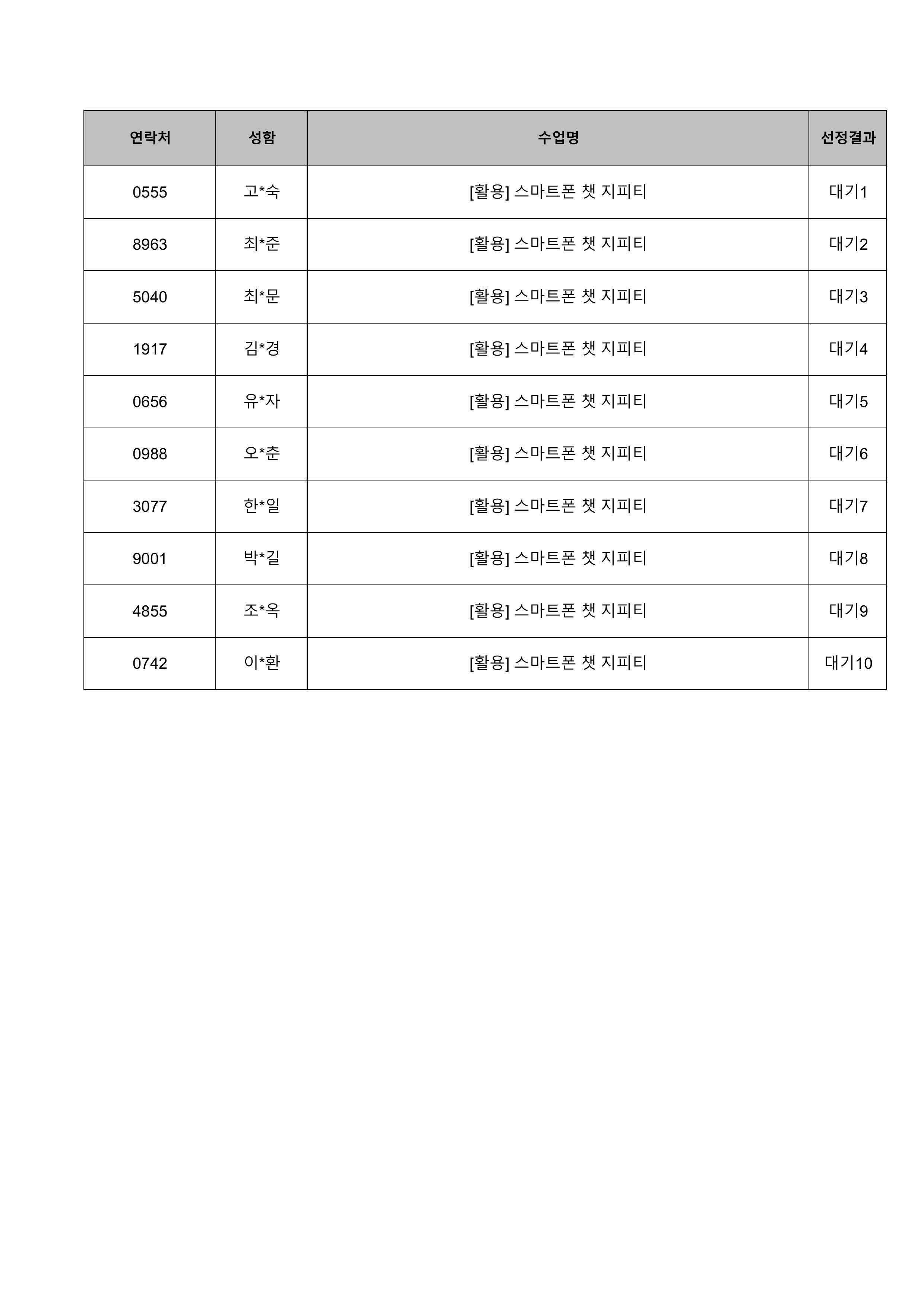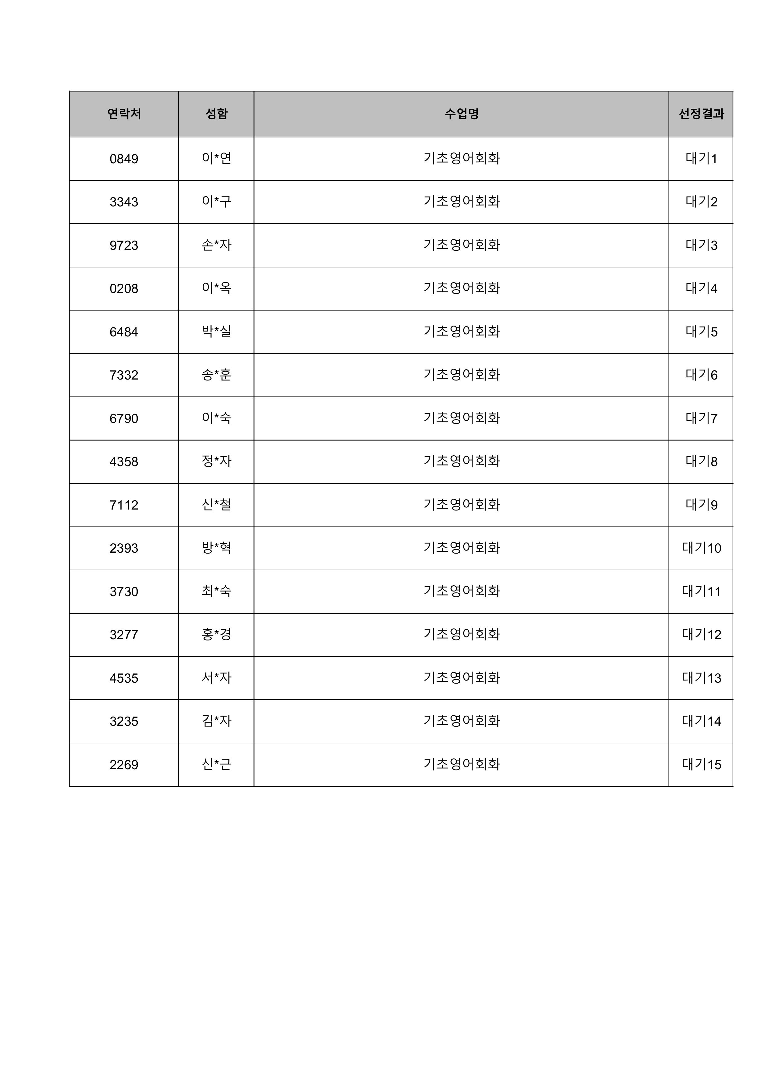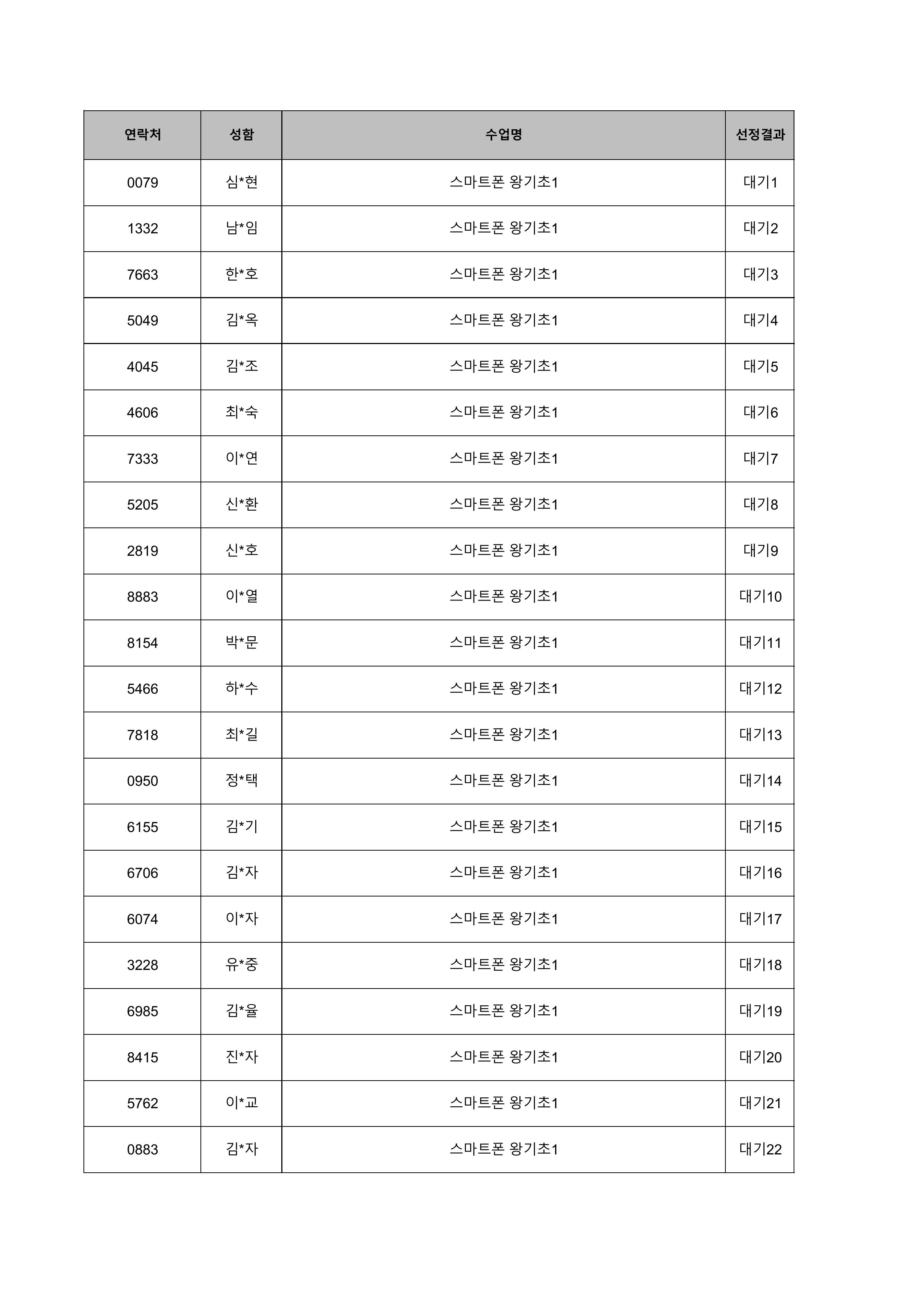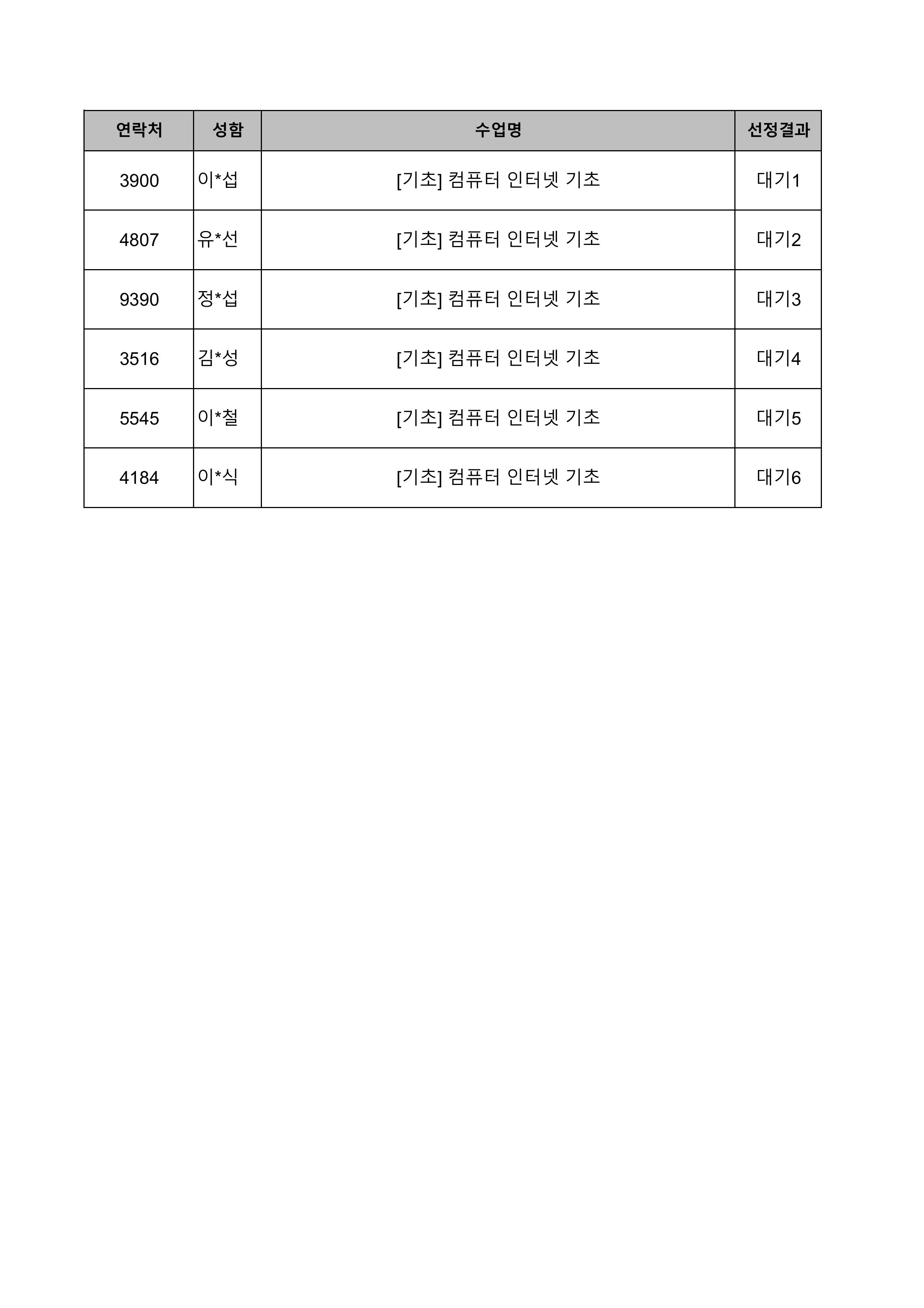 1. 대기자의 경우 선정자가 수강을 취소하는 경우 추가 선정됩니다.