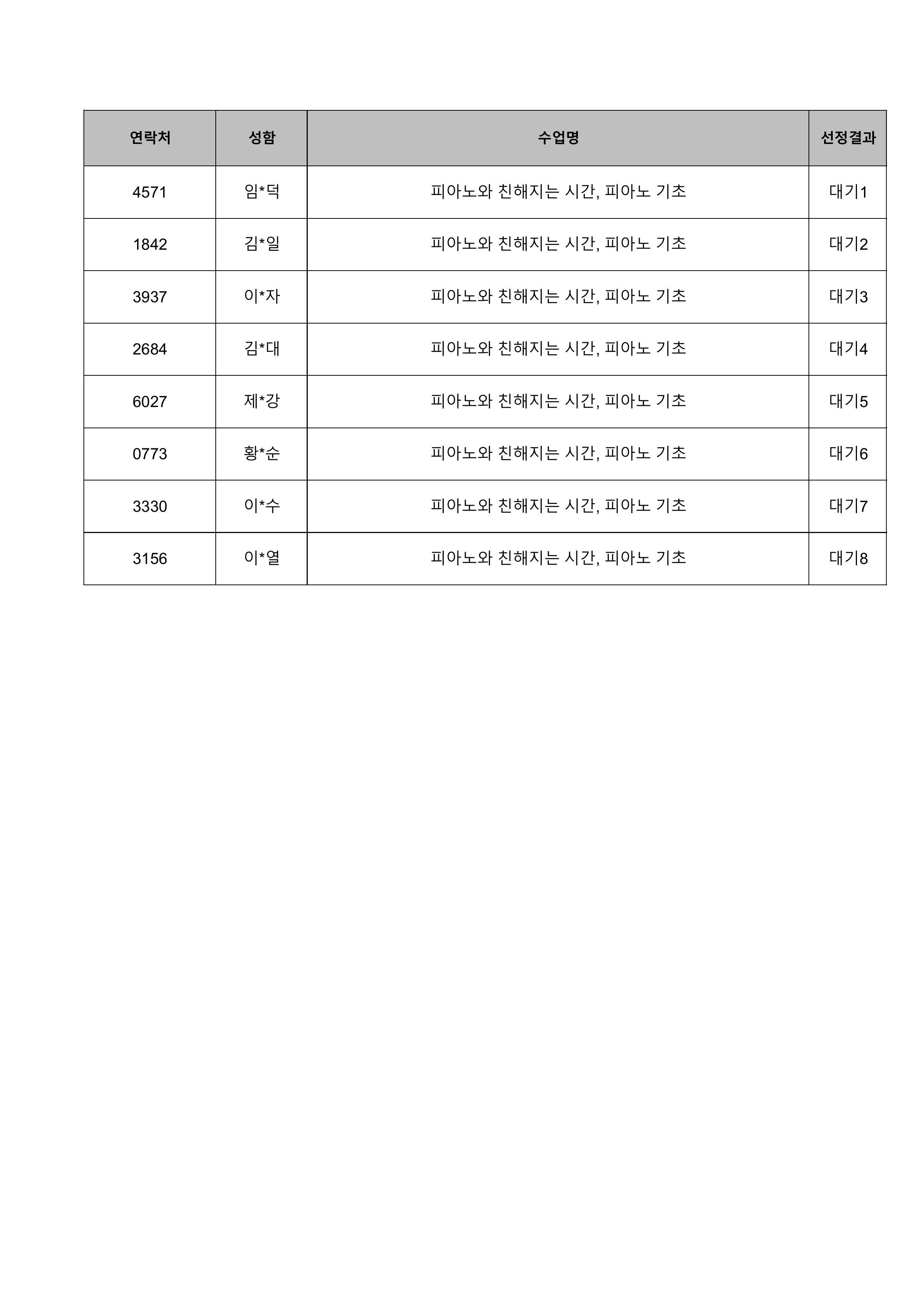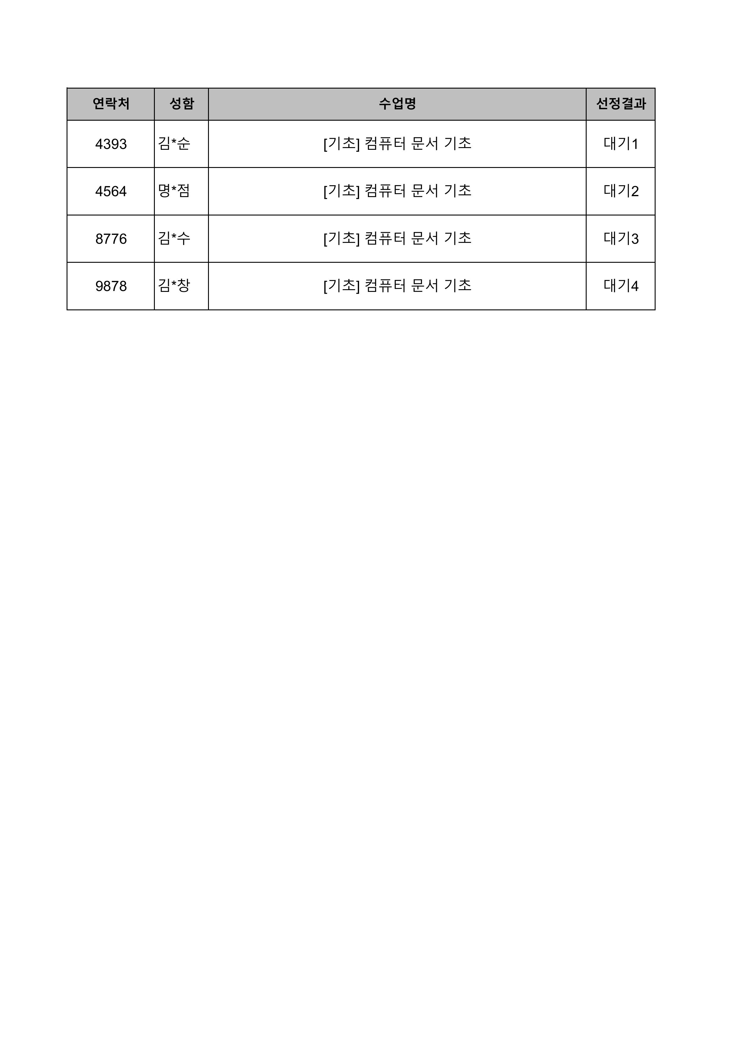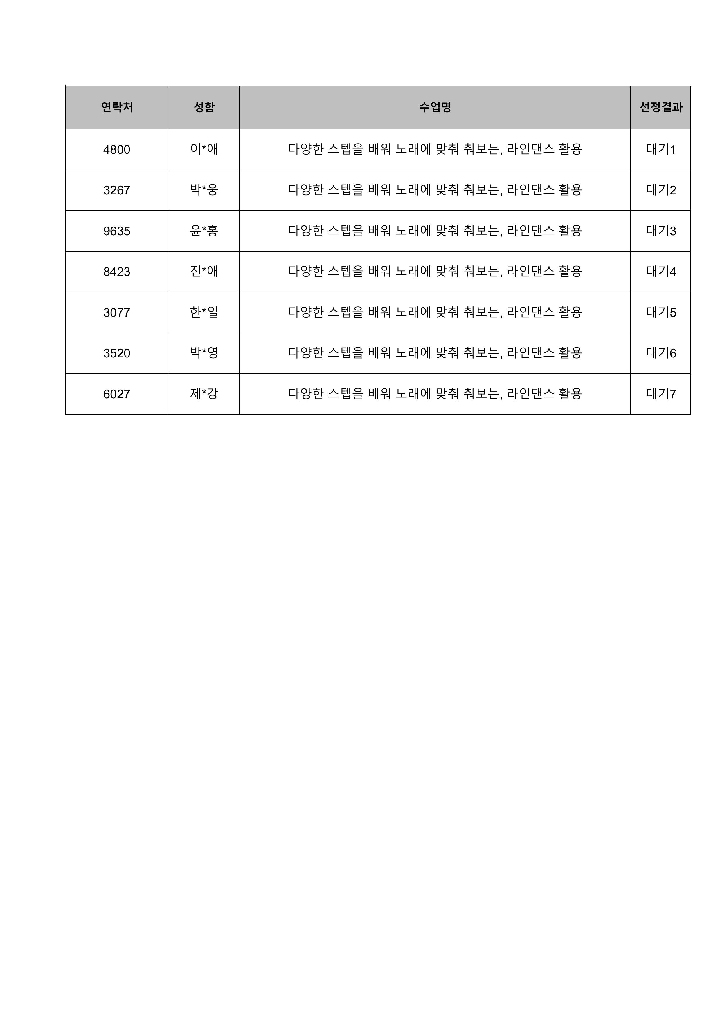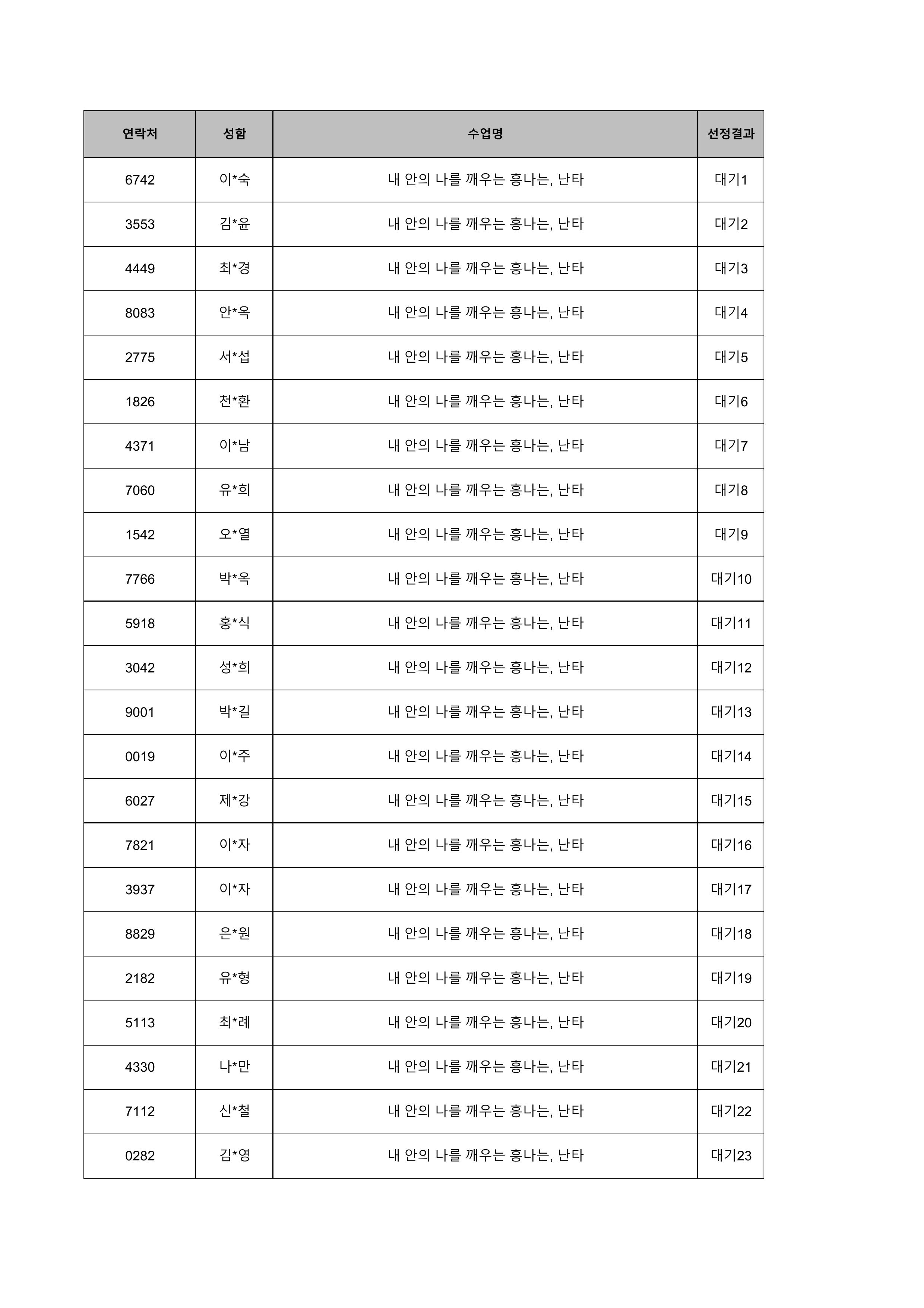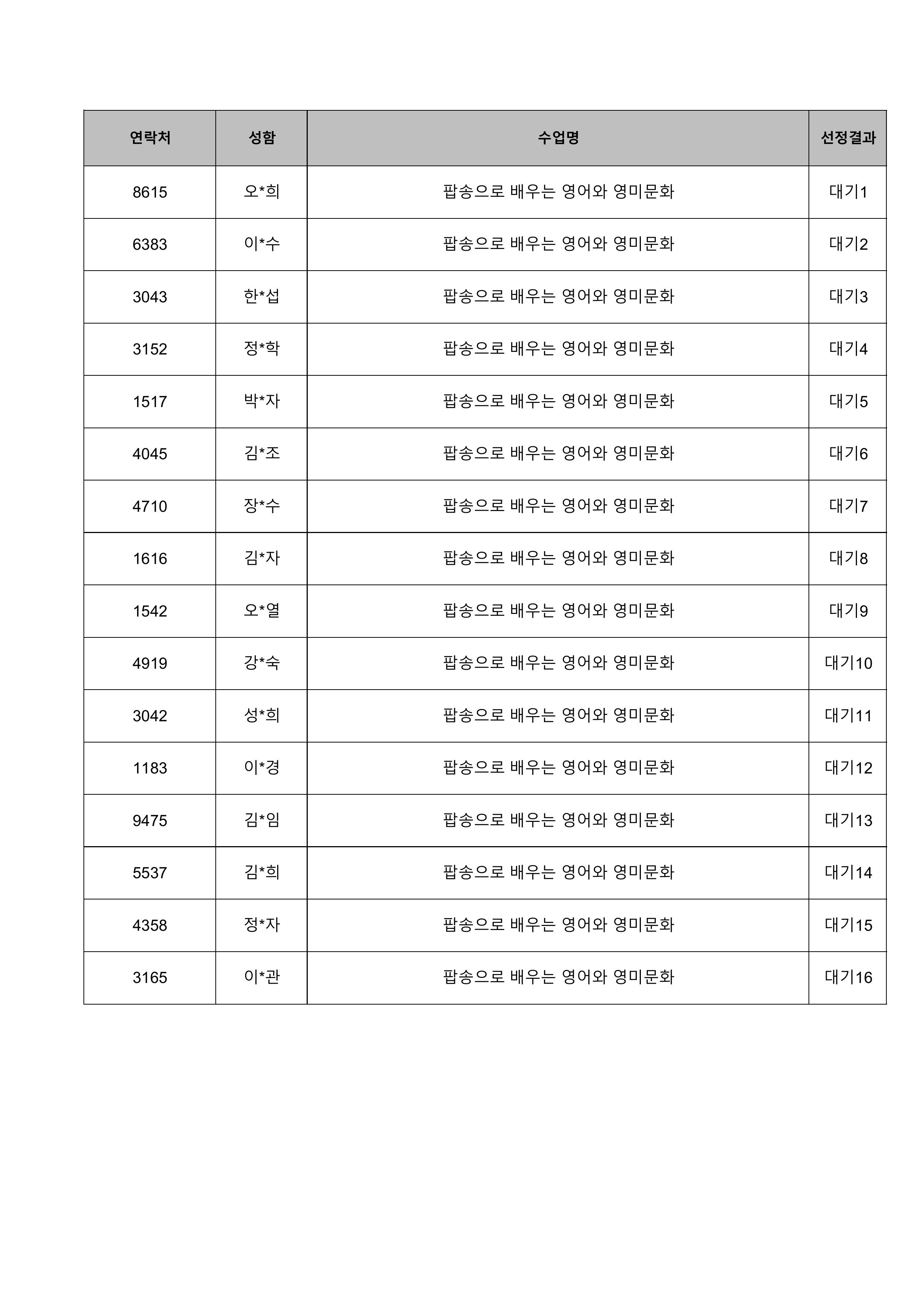 1. 대기자의 경우 선정자가 수강을 취소하는 경우 추가 선정됩니다.