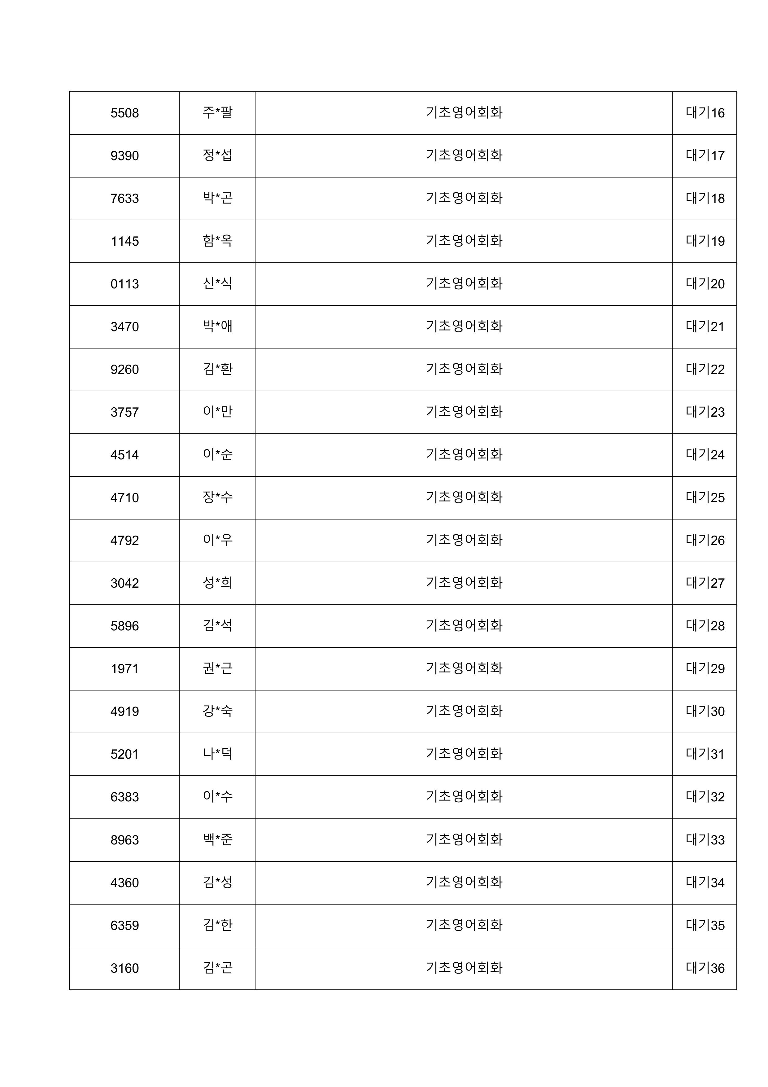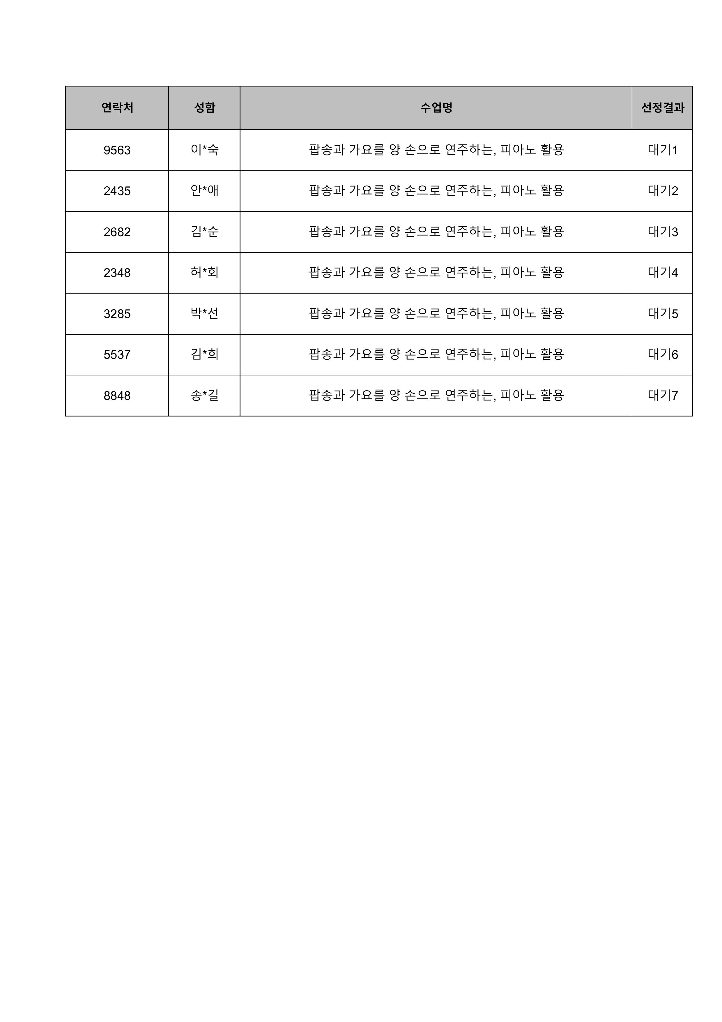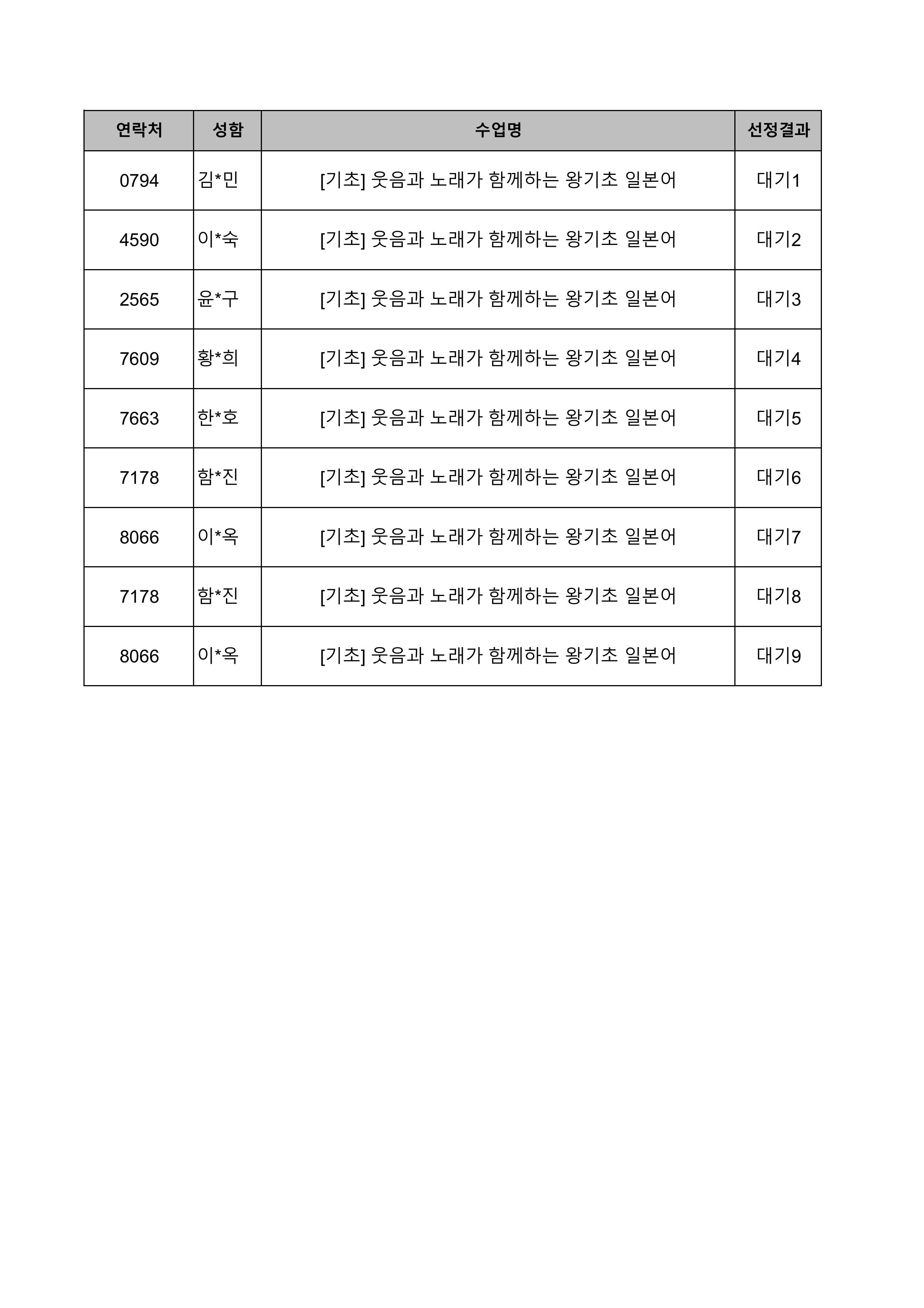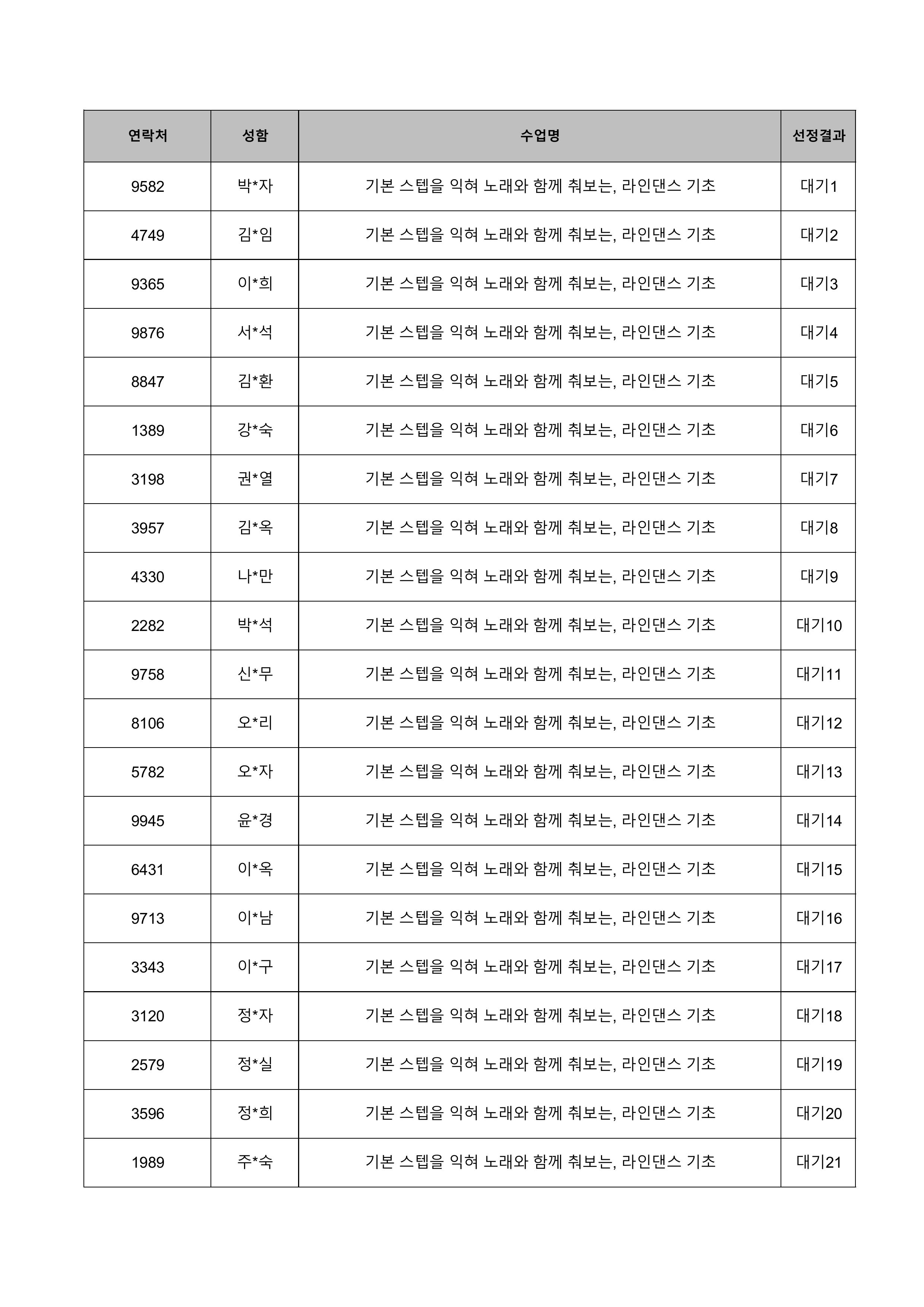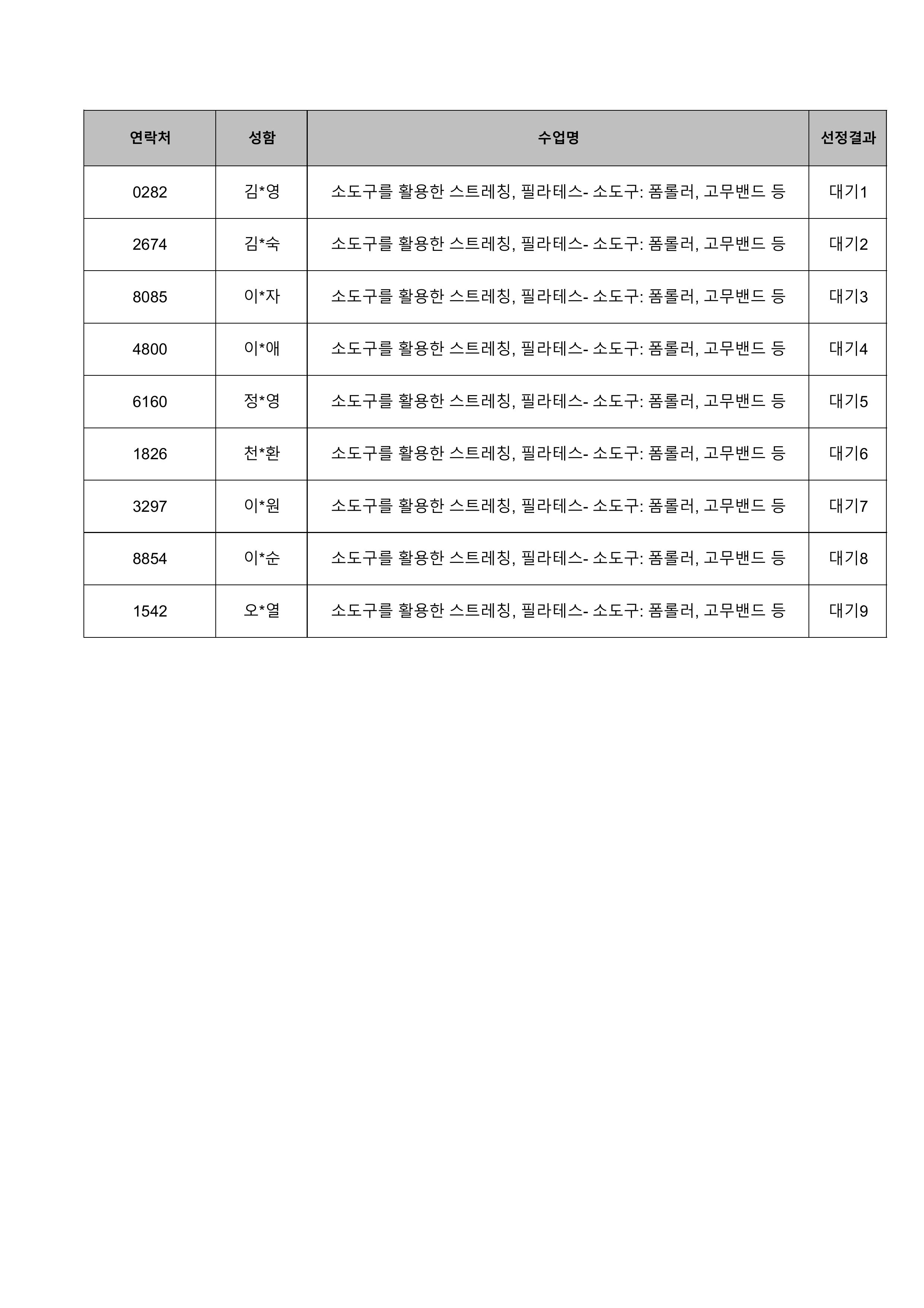 1. 대기자의 경우 선정자가 수강을 취소하는 경우 추가 선정됩니다.