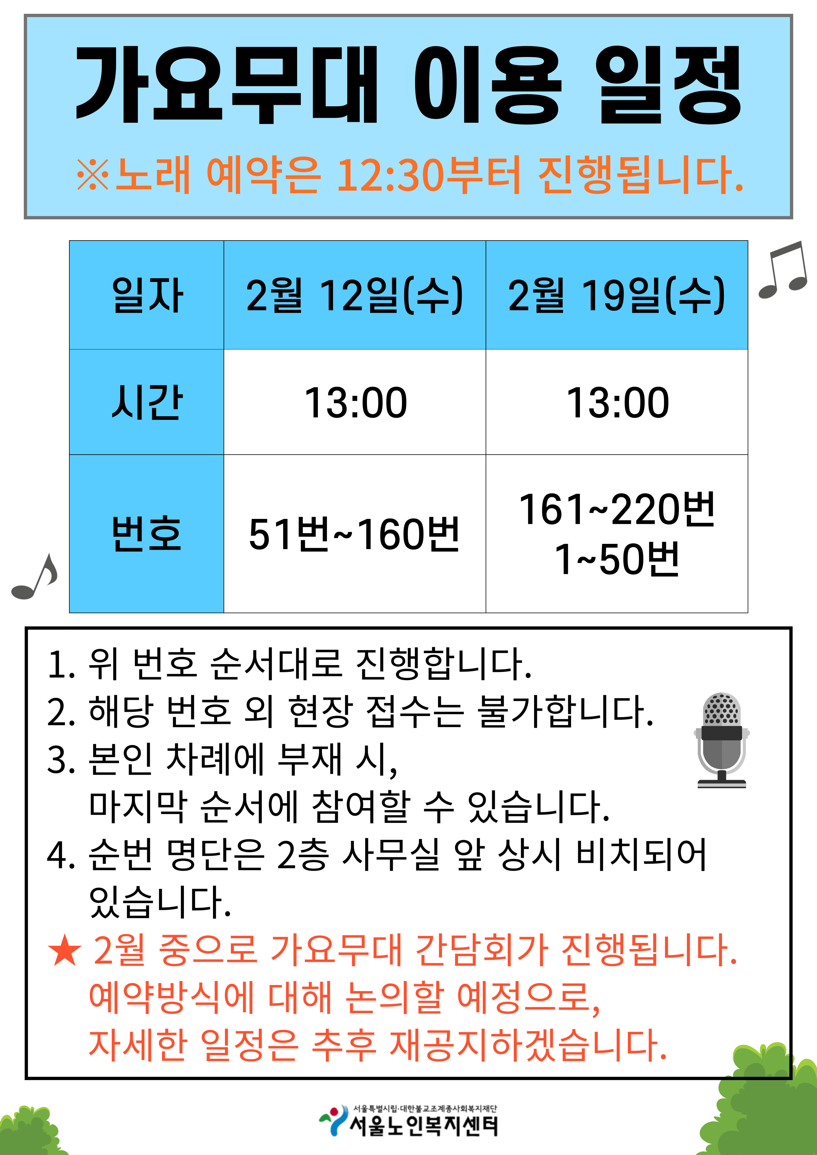 [평생교육팀] 2025 가요무대 이용일정(2/12, 2/19)