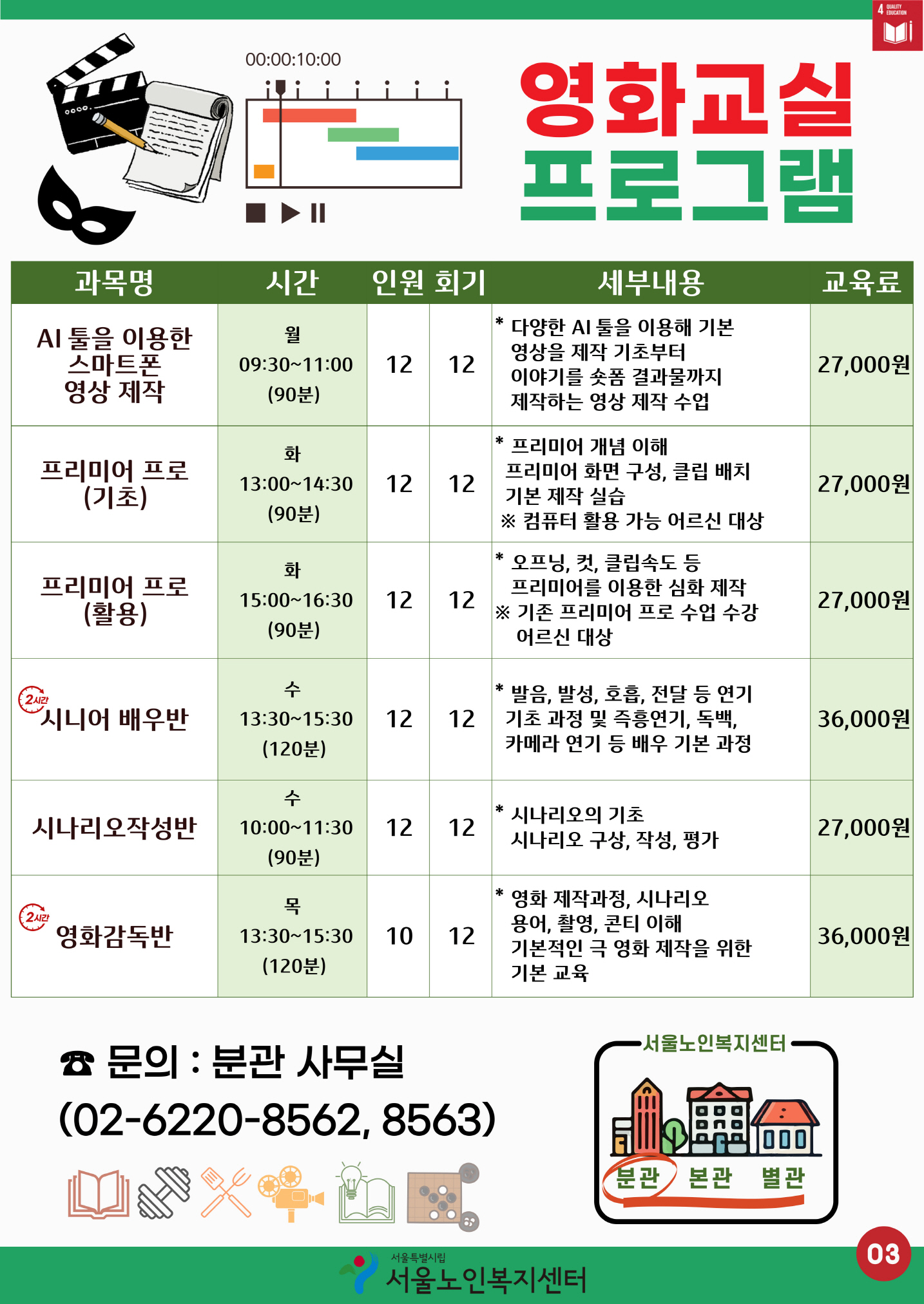 | [공지] | 11월 영화상영시간표 |     | 담당자 | 2025-10-30 |