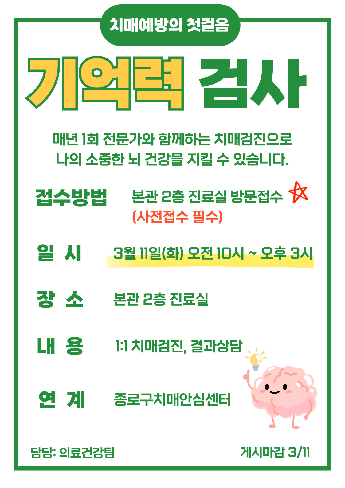 [의료건강팀] 기억력 검사 참여안내