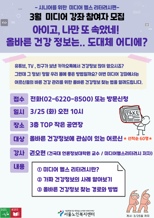 2025년 3월 미디어 강좌 '아이고, 나만 또 속았네! 올바른 건강 정보는..도대체 어디에?' 참여자 모집