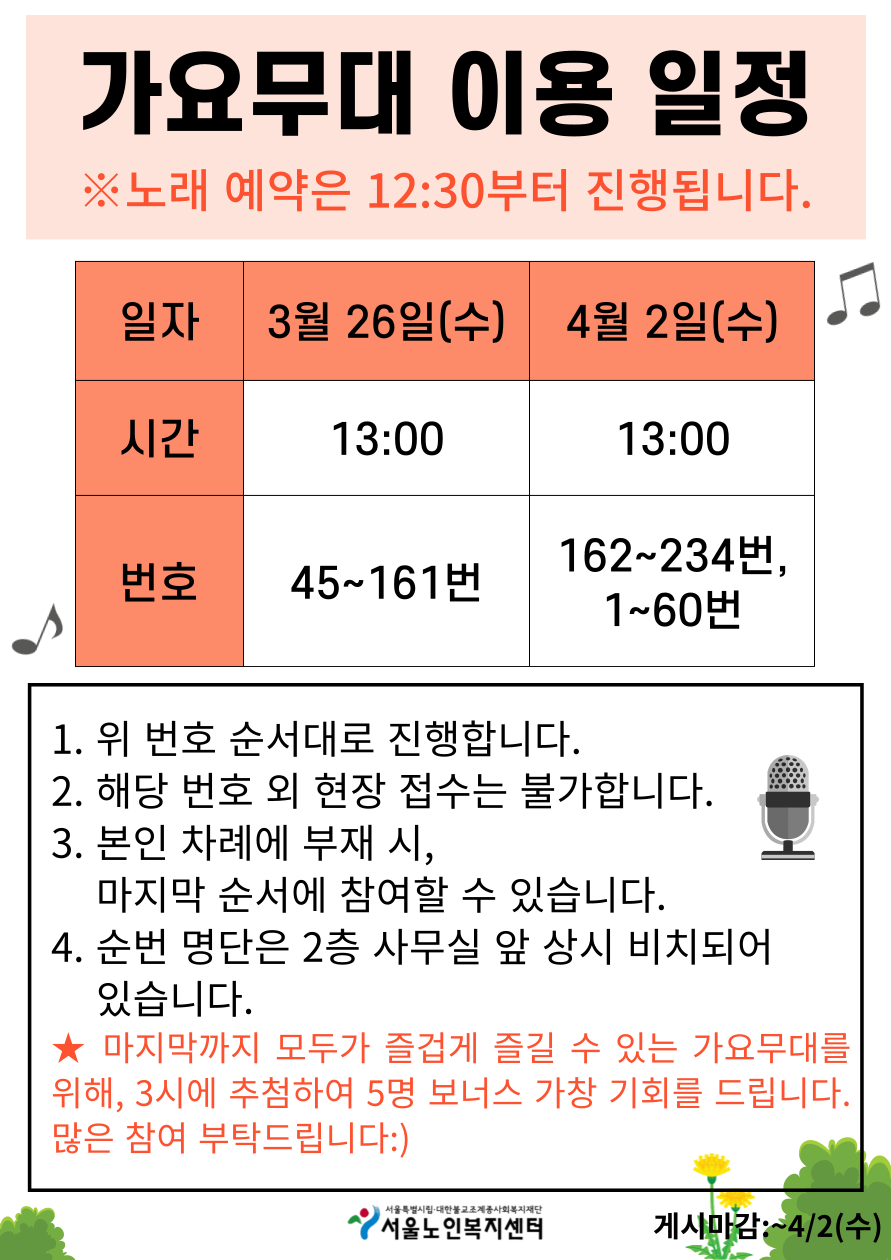 [평생교육팀] 2025 가요무대 이용일정(3/26, 4/2)
