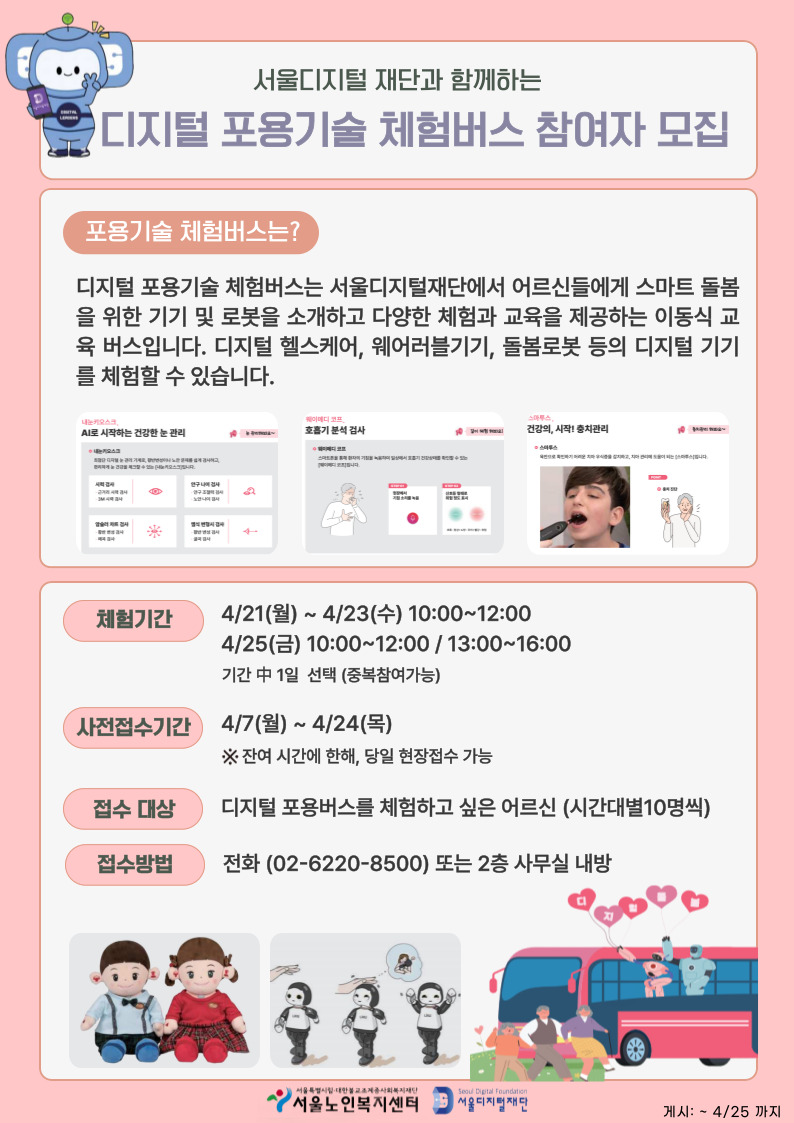 [평생교육팀] 서울디지털재단과 함께한는 디지털 포용기술 체험버스 참여자 모집