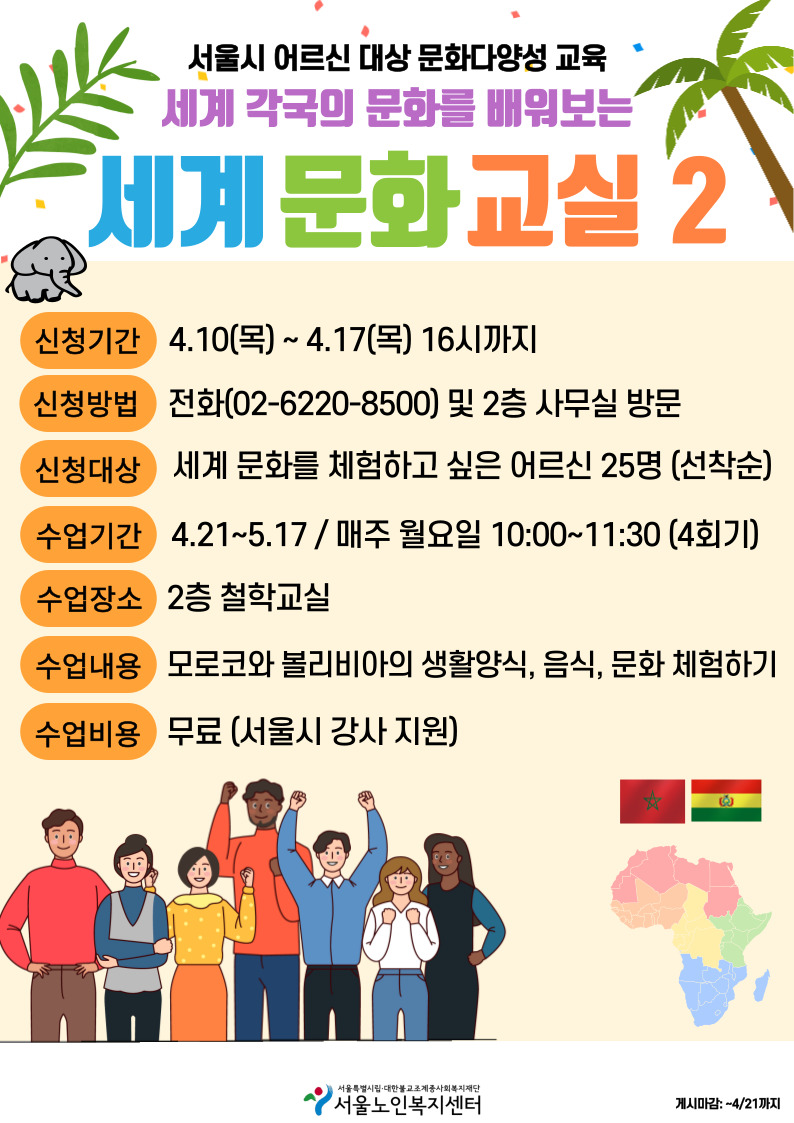[평생교육팀] 문화다양성 교육 '세계문화교실' 참여자 모집 안내