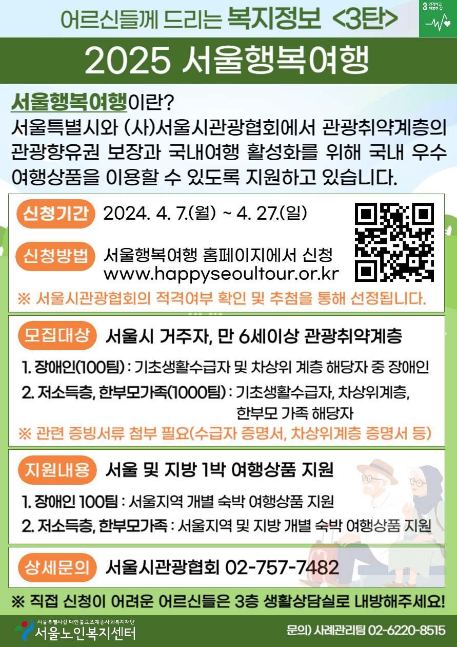 [사례관리팀] 2025년 복지정보 3탄 - 서울행복여행
