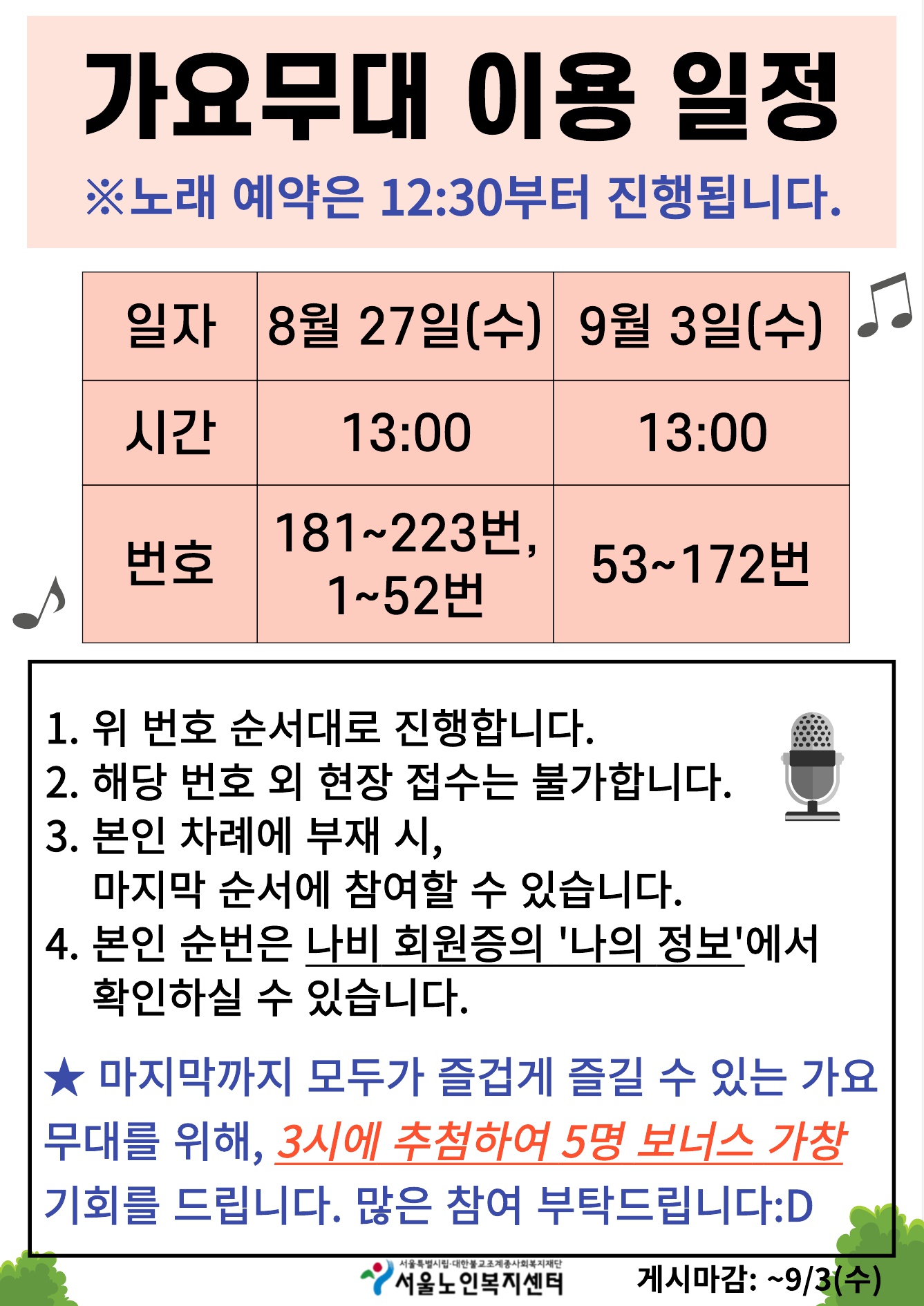 [평생교육팀] 2025 가요무대 이용일정(8/27, 9/3)