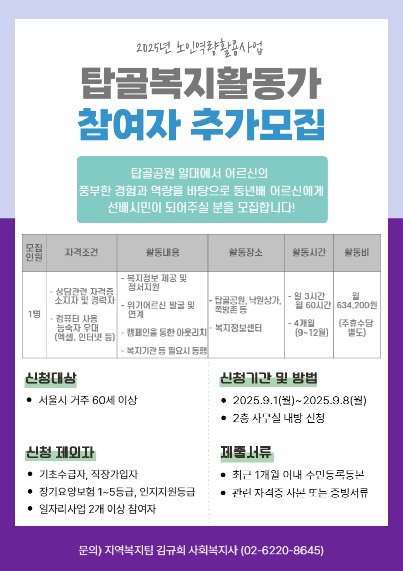 [지역복지팀] 노인역량활용사업 탑골복지활동가 참여자 추가모집