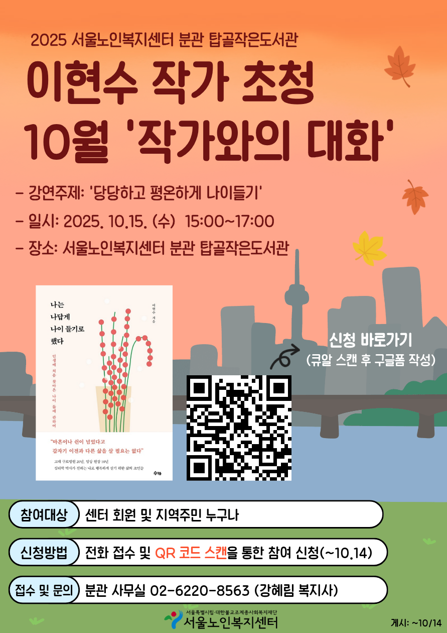 [분관팀] 탑골작은도서관 10월 작가와의 대화 참여자 모집