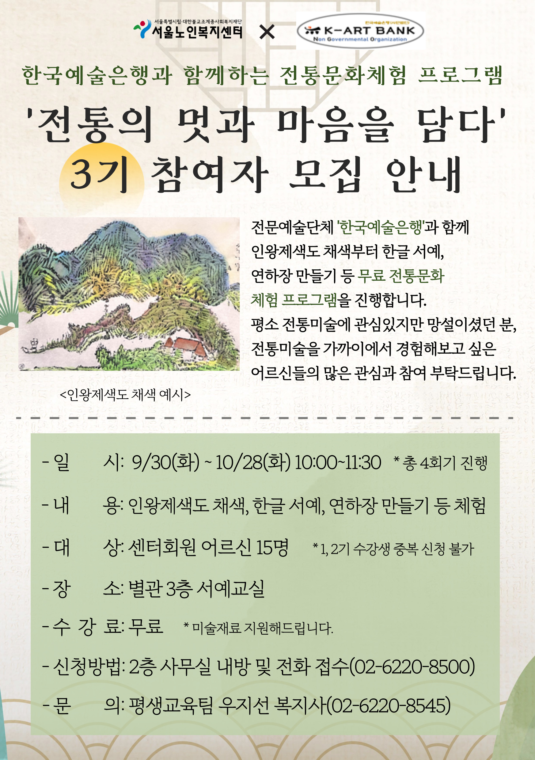 [평생교육팀] 한국예술은행과 함께하는 전통의 멋과 마음을 담다 3기 참여자 모집