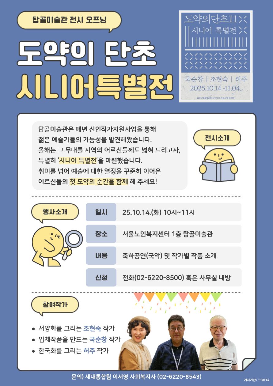[세대통합팀] 탑골미술관 도약의 단초 시니어 특별전 전시 오프닝 행사 참여자 모집