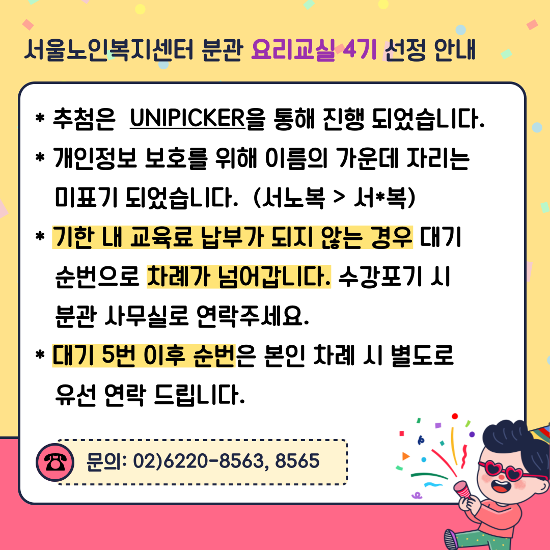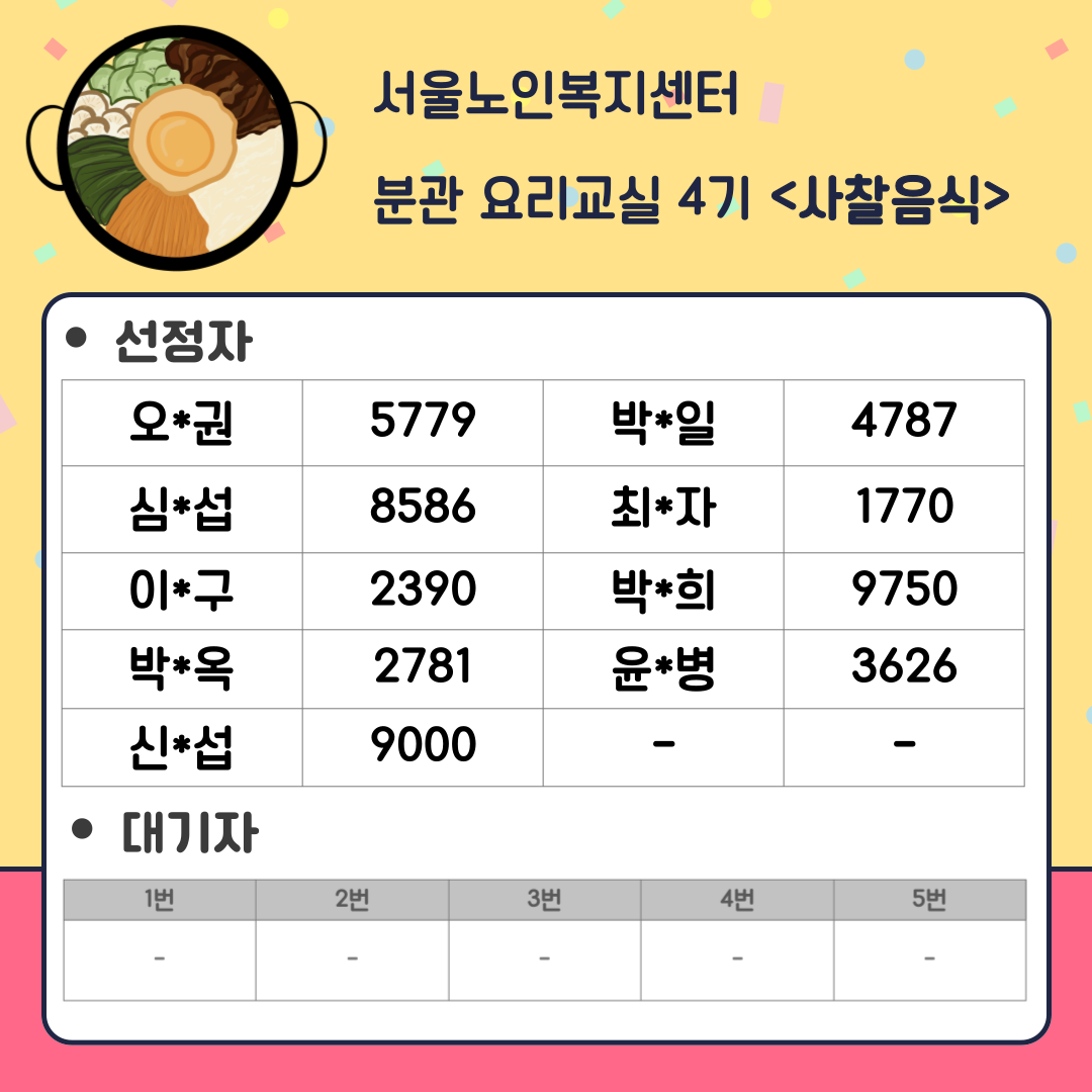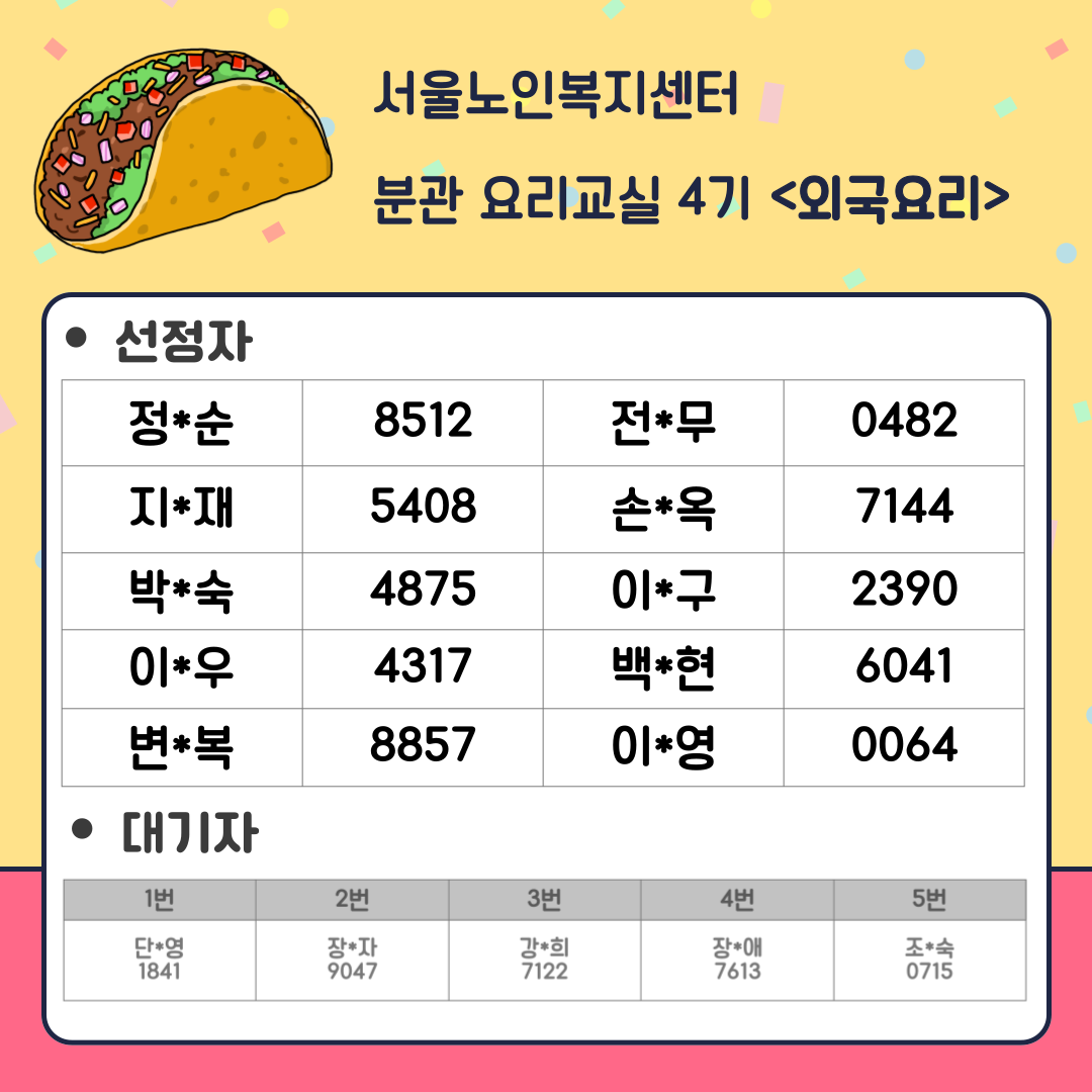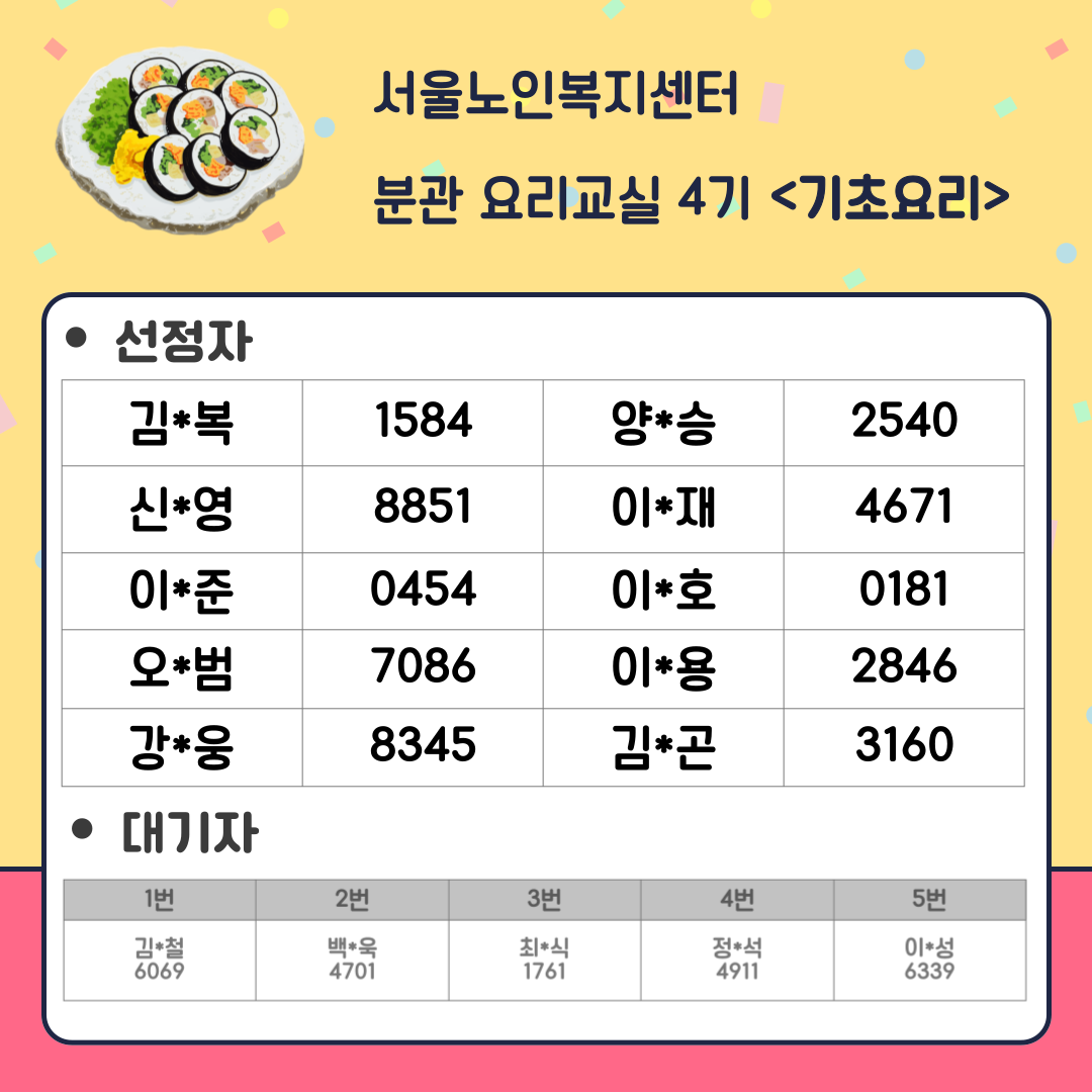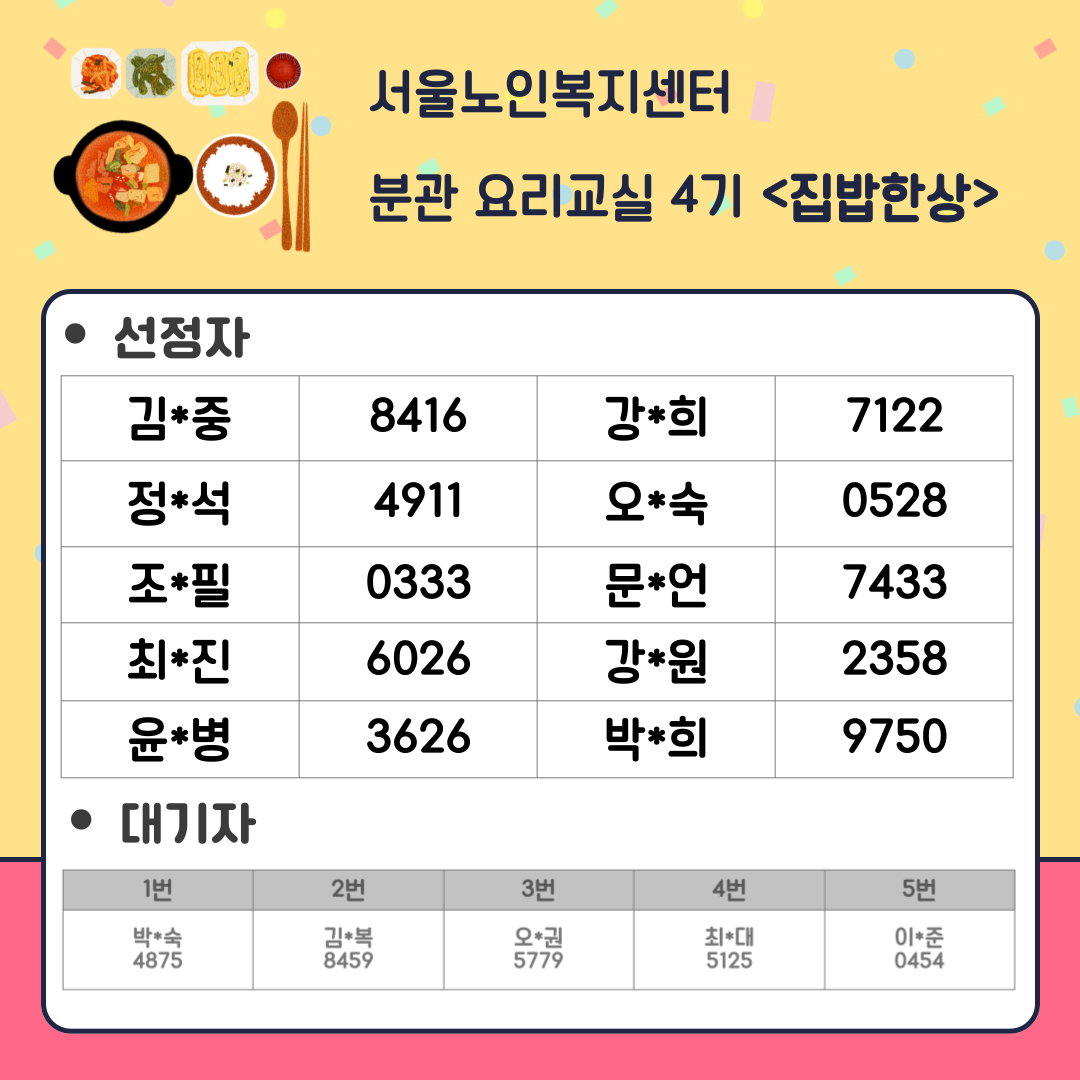 [교육여가문화팀] [분관] 요리교실 4기 선정자 안내