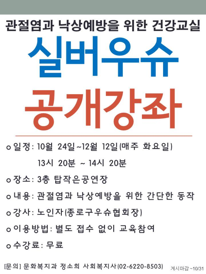[문화복지과] 취미교실 '실버우슈' 공개강좌 안내