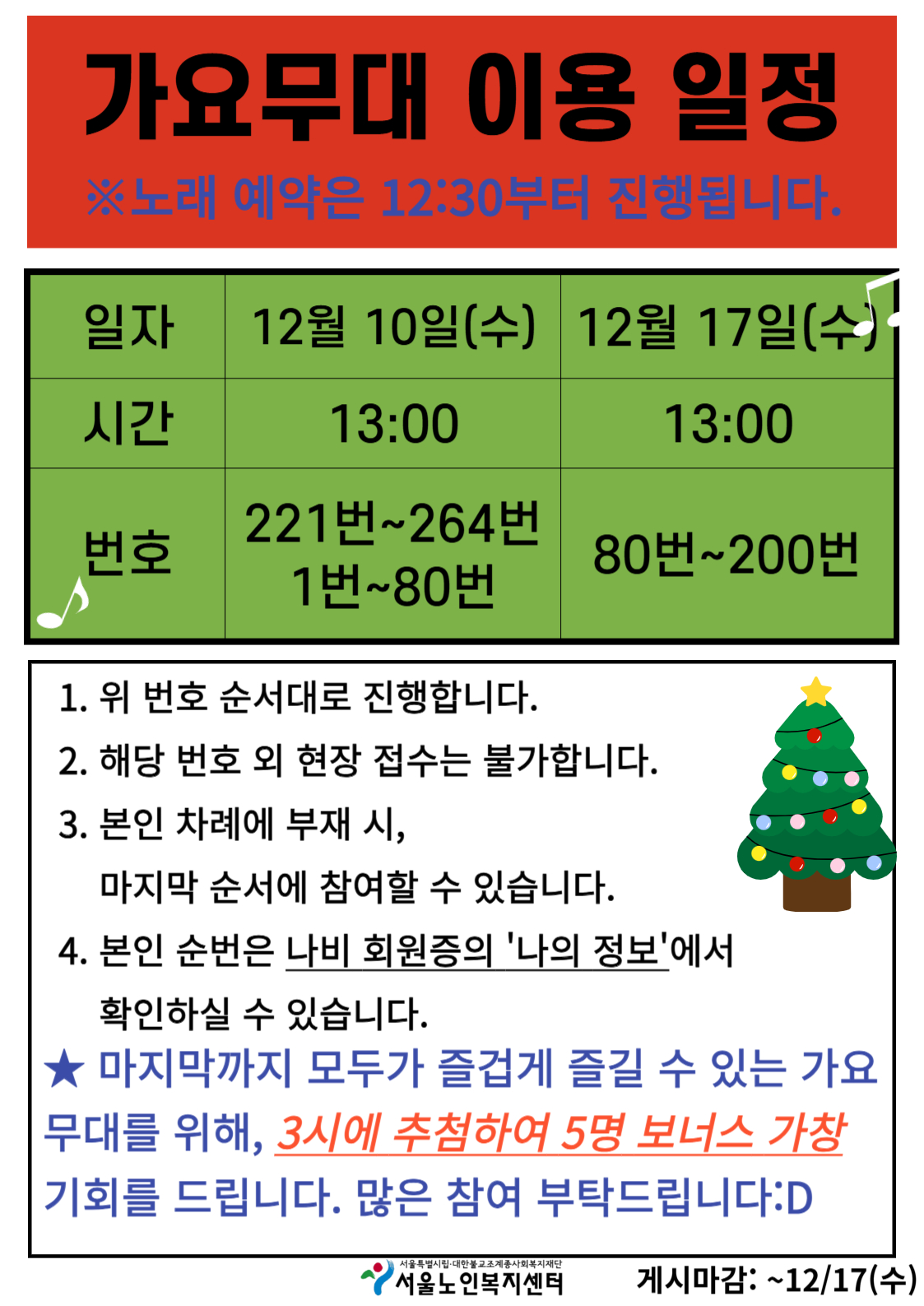 [평생교육팀] 가요무대 순번 공지(12.10 / 12.17)