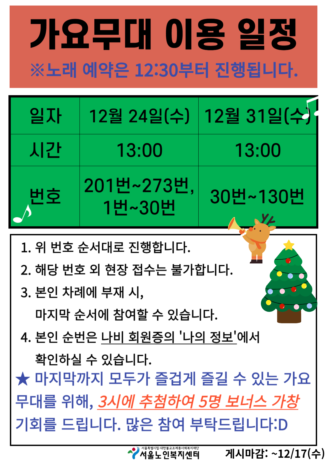 [평생교육팀] 가요무대 순번 공지(12.24, 12.31)