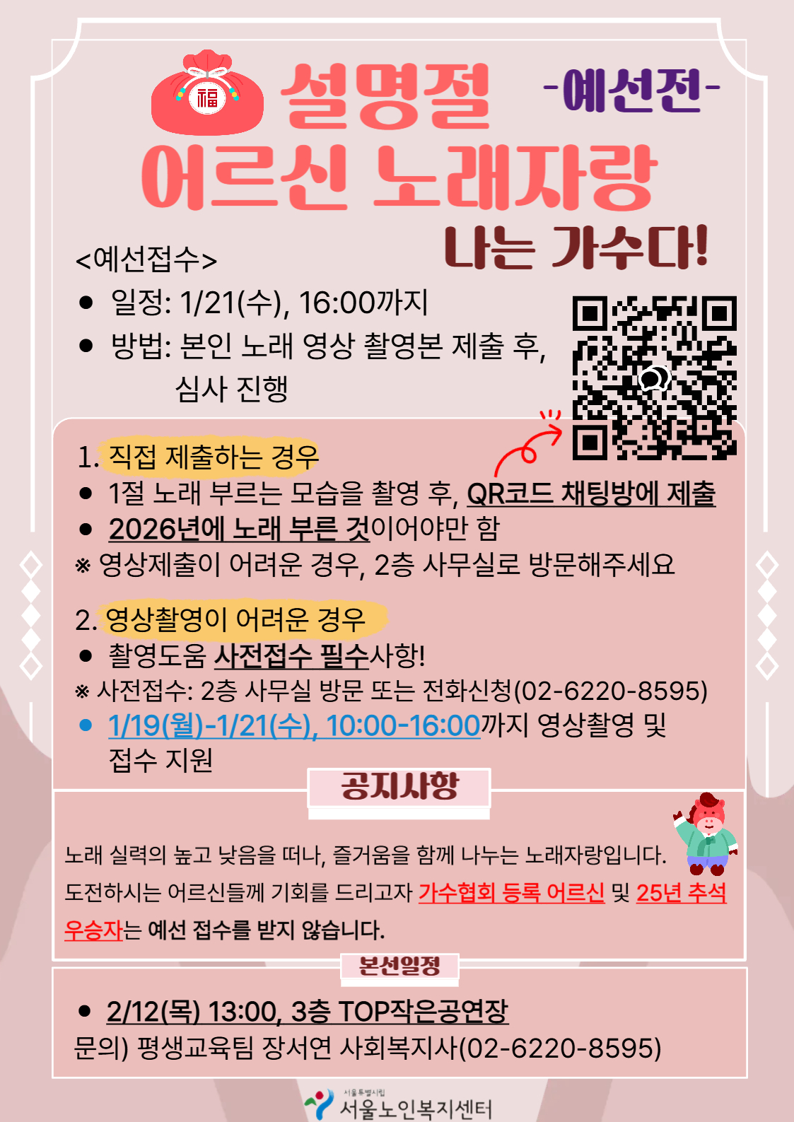 [평생교육팀] 설맞이 어르신 노래자랑 '나는 가수다!' 예선전 접수 홍보