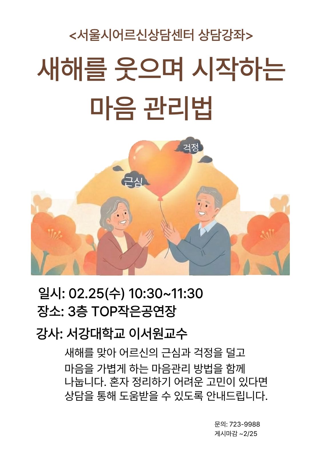[상담센터] [상담강좌]서울시어르신상담센터 2월 상담강좌(새해를 웃으며 시작하는 마음 관리법) 안내