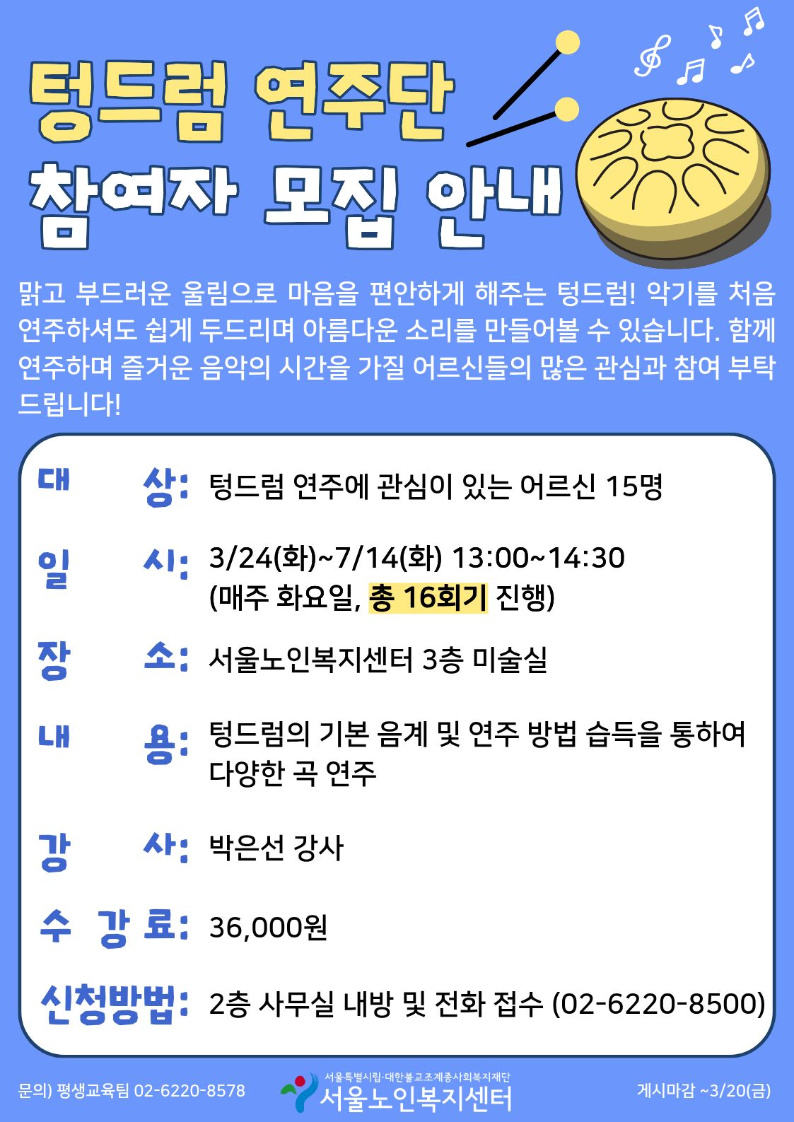 [평생교육팀] 텅드럼 연주단 프로그램 참여자 모집
