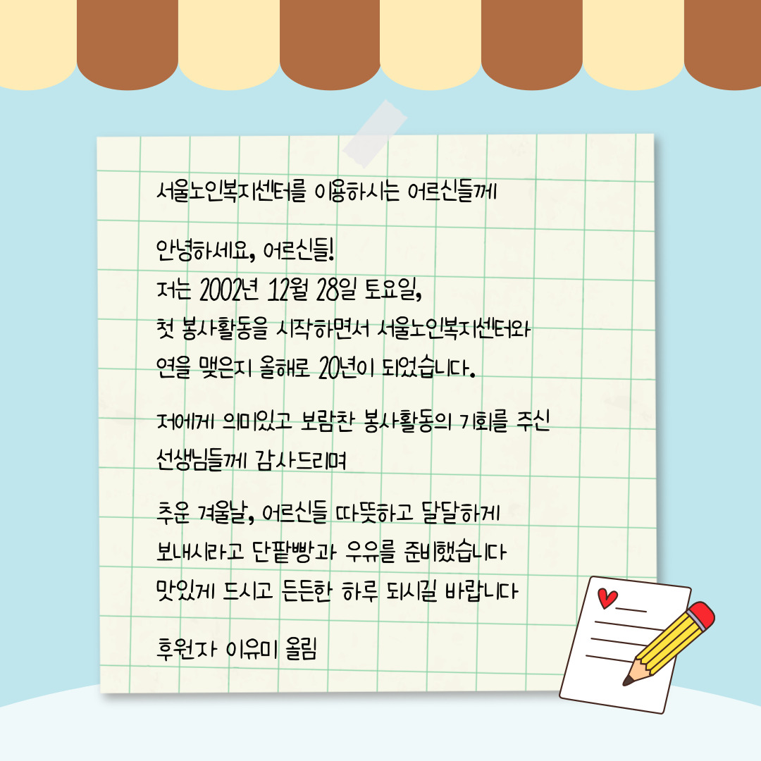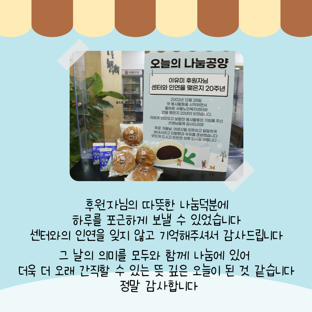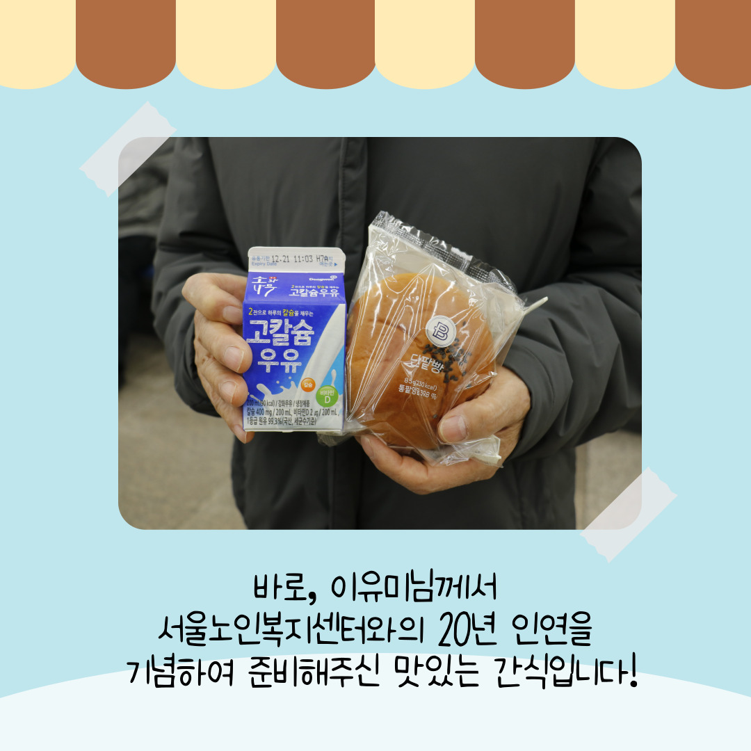 [지역복지2팀] 센터와의 20년 인연을 기념하며, 단팥빵&우유 나눔공양