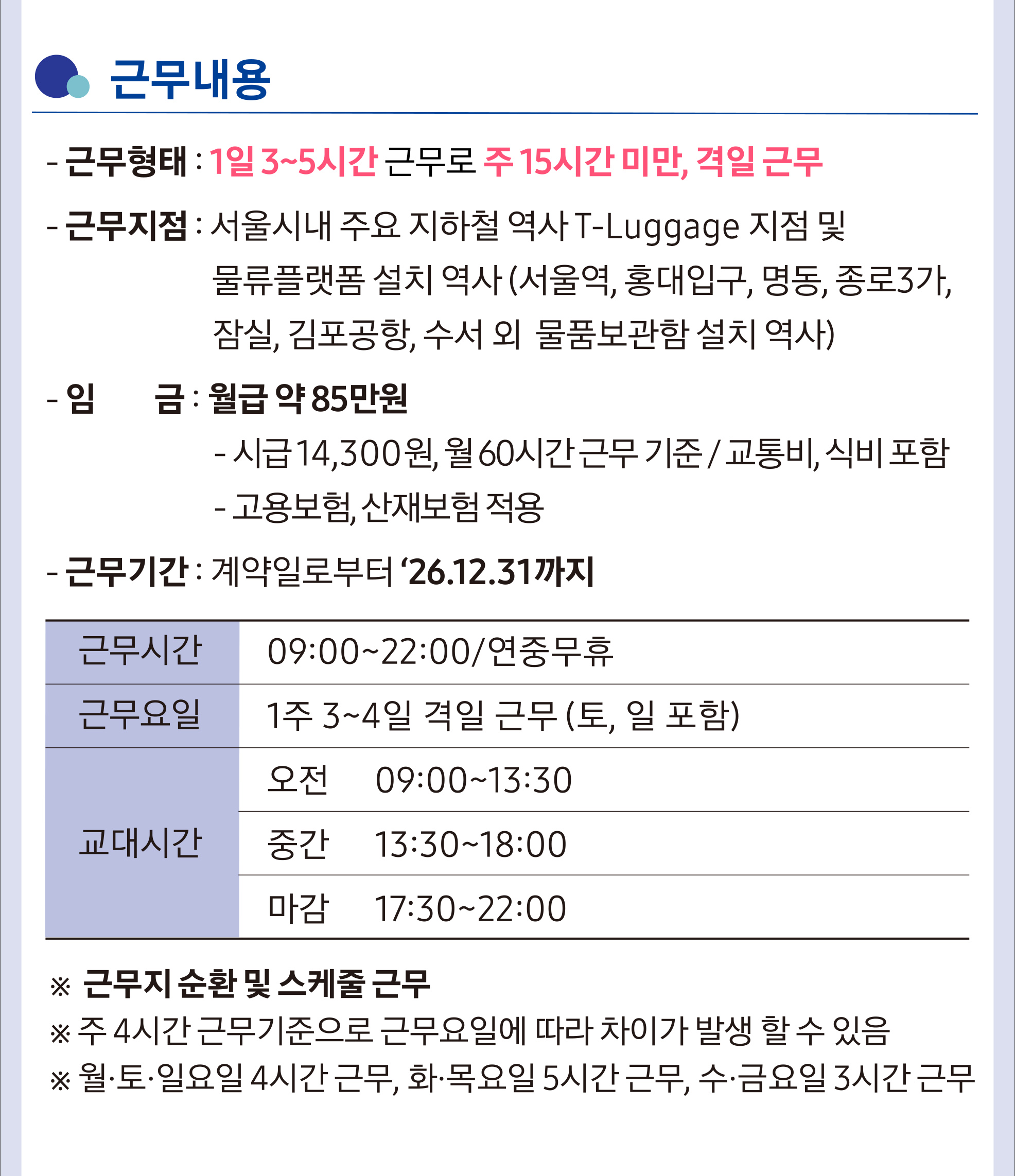 | 근무지역 | 근무지역서울시 지하철역사 내 |