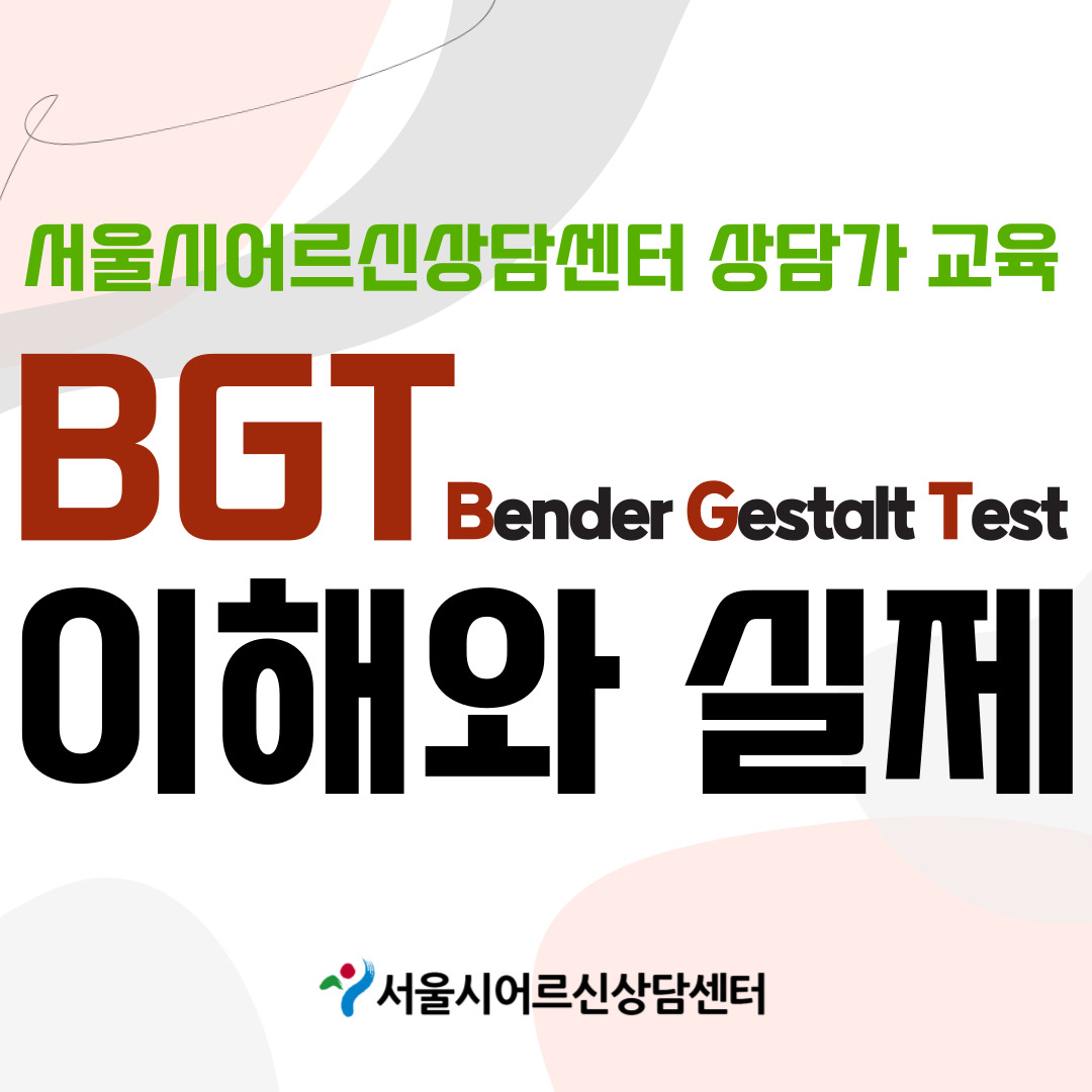 서울시어르신상담센터에서는 내담자 어르신들의 이해를 돕고 전문적으로 개입할 수 있도록 심리검사도구 활용을 위한 교육을 새롭게 진행하였습니다. BGT는 인지적 특성을 파악해 볼 수 있는 도구로, 교육을 통해 이론적 배경과 해석방법, 사례를 분석해보는 시간을 가질 수 있었습니다.