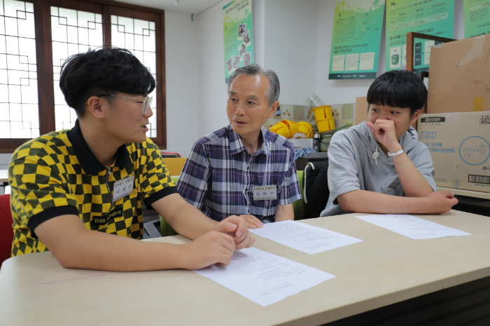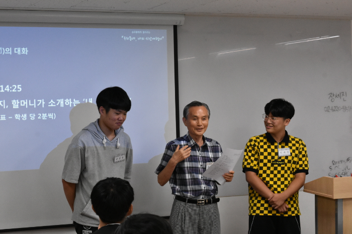 마지막으로 이번 중앙고등학교 협동수업에 대한 어르신들의 소감을 나누고, 작별의 시간을 가졌습니다. 한 어르신은 “신,구가 서로의 세대를 이해하는 좋은 기회가 되었다.”며 학생과의 만남을 매우 아쉬워하는 모습이었습니다. 다른 어르신들도 마치 손주와 헤어지는 것처럼 손을 꼭 잡으시고, 앞으로 목표하고자 하는 장래희망을 꼭 이루고 다음에 다시 한 번 만나자는 약속을 한 후 아쉽게 인사를 나눴습니다. 학생들 역시 짧았던 이틀 동안 정이 들었는지, 선물을 전해주거나 사진을 같이 찍는 등 무척 아쉬워하는 모습이었습니다.