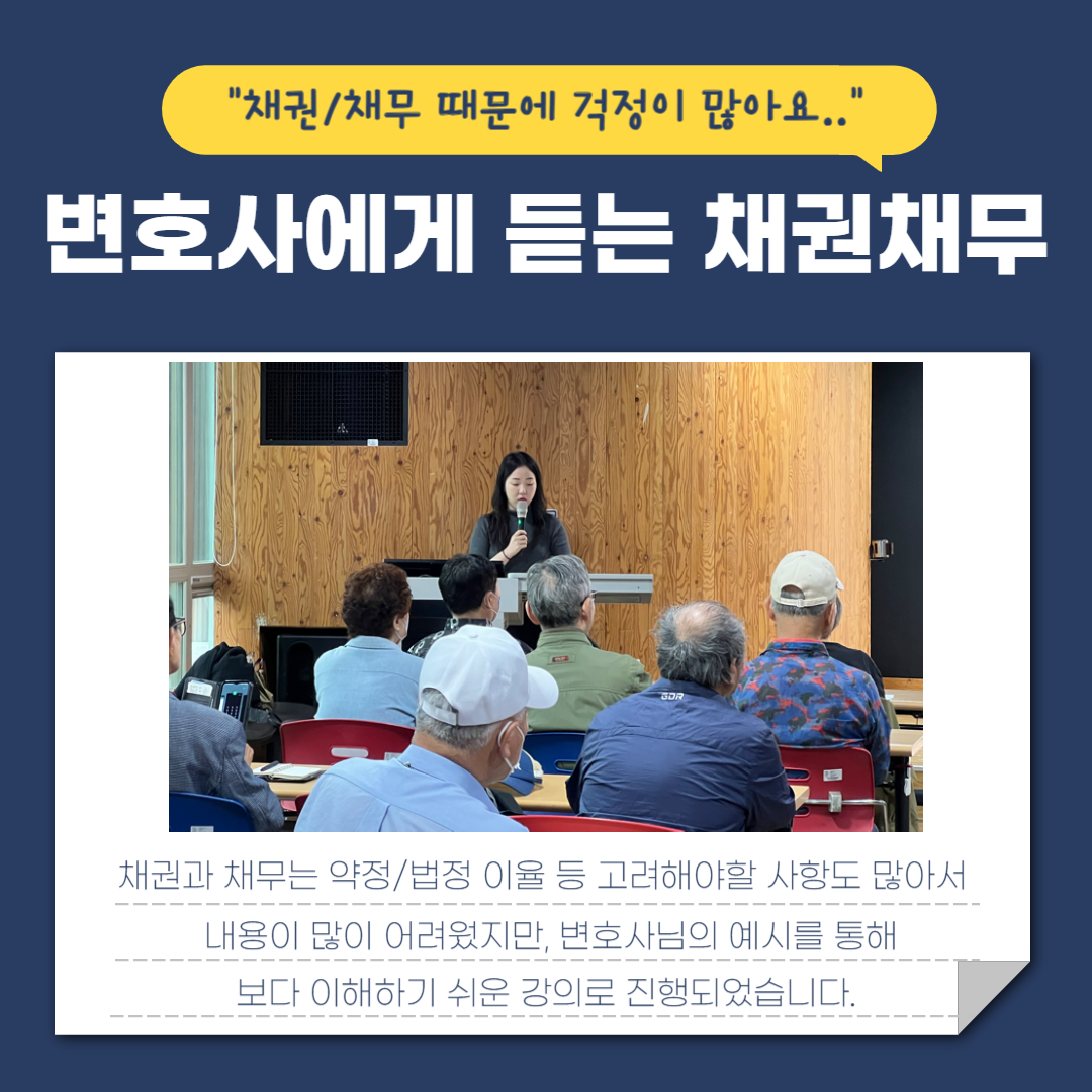 [사례관리팀] 5월 권익강좌 '변호사에게 들어보는 채권과 채무'