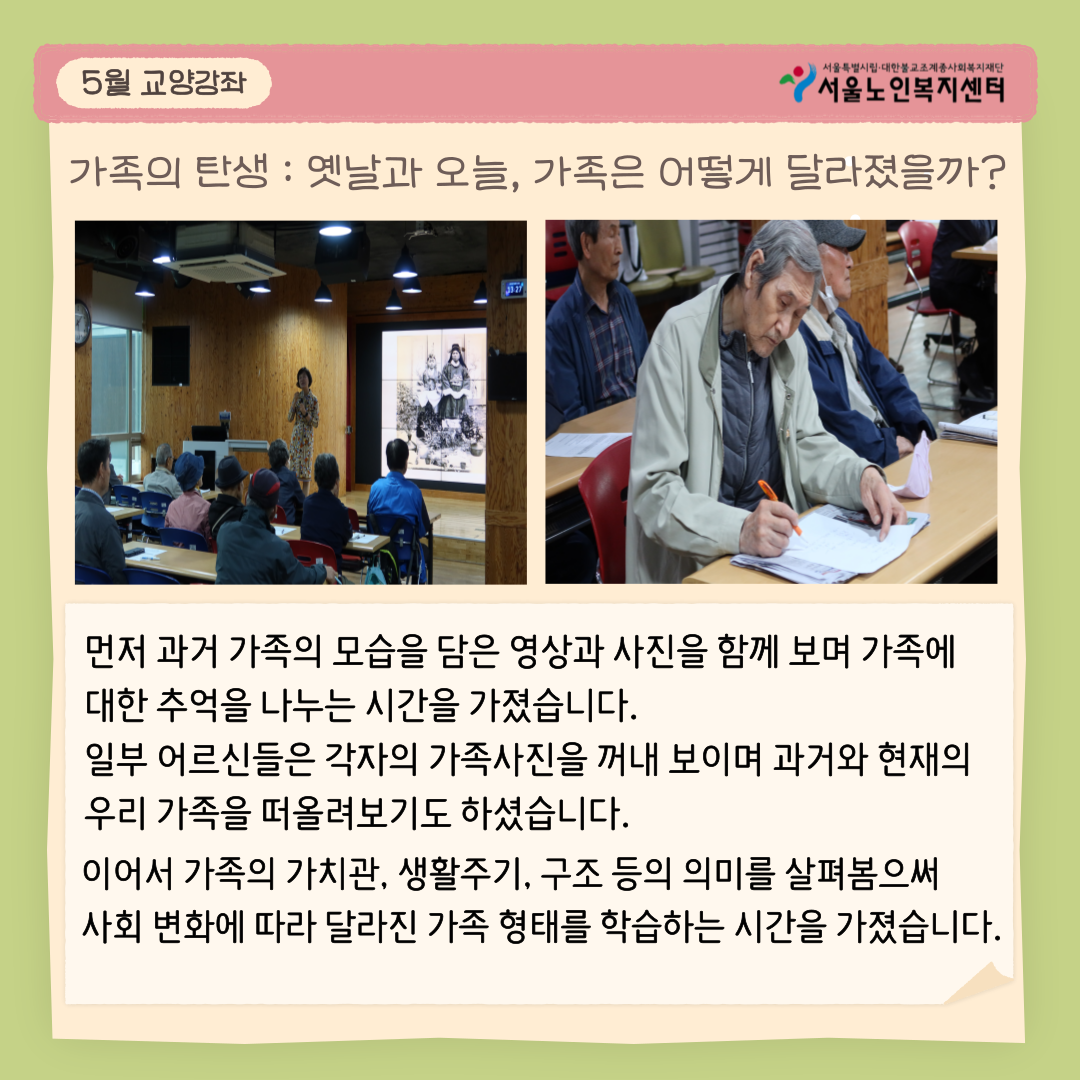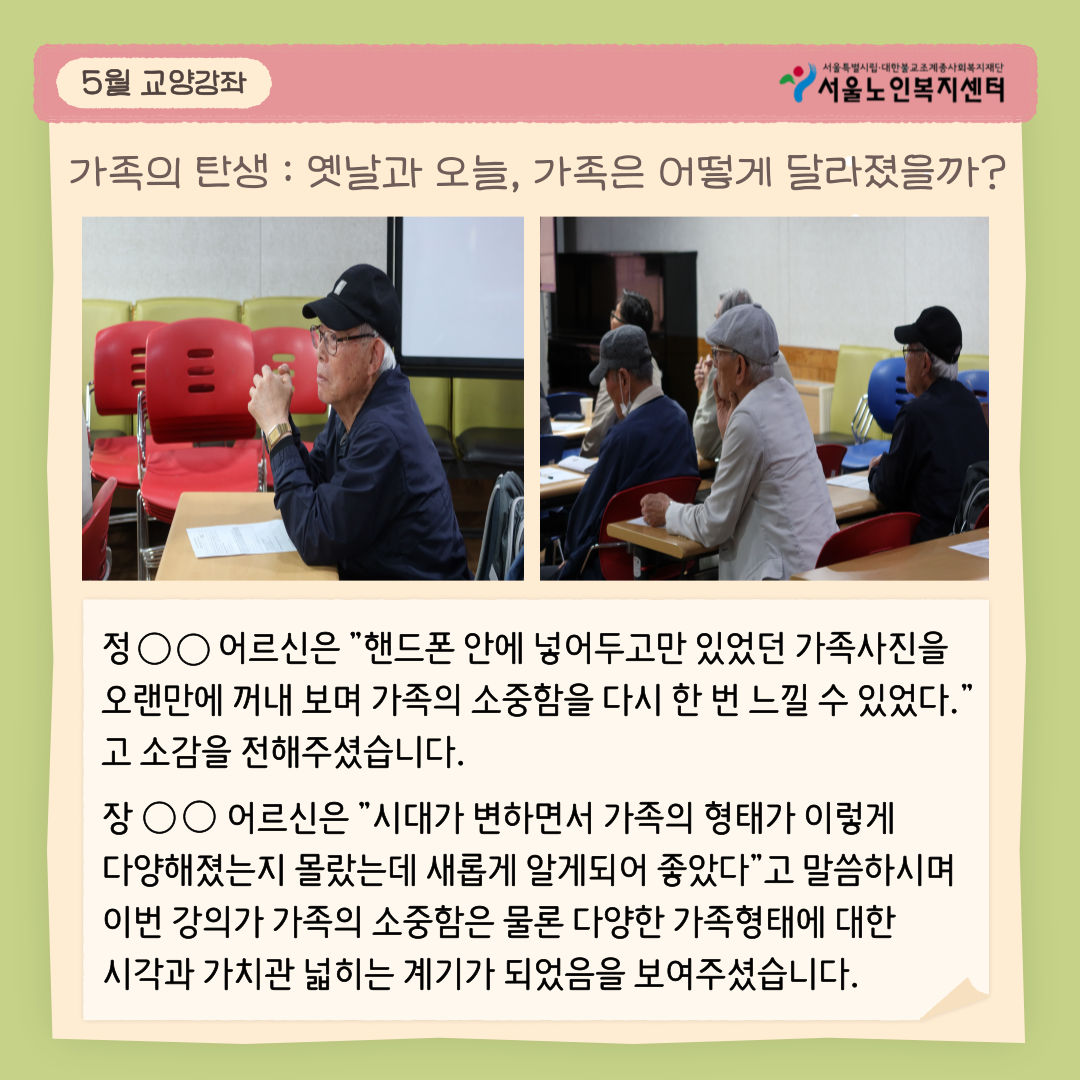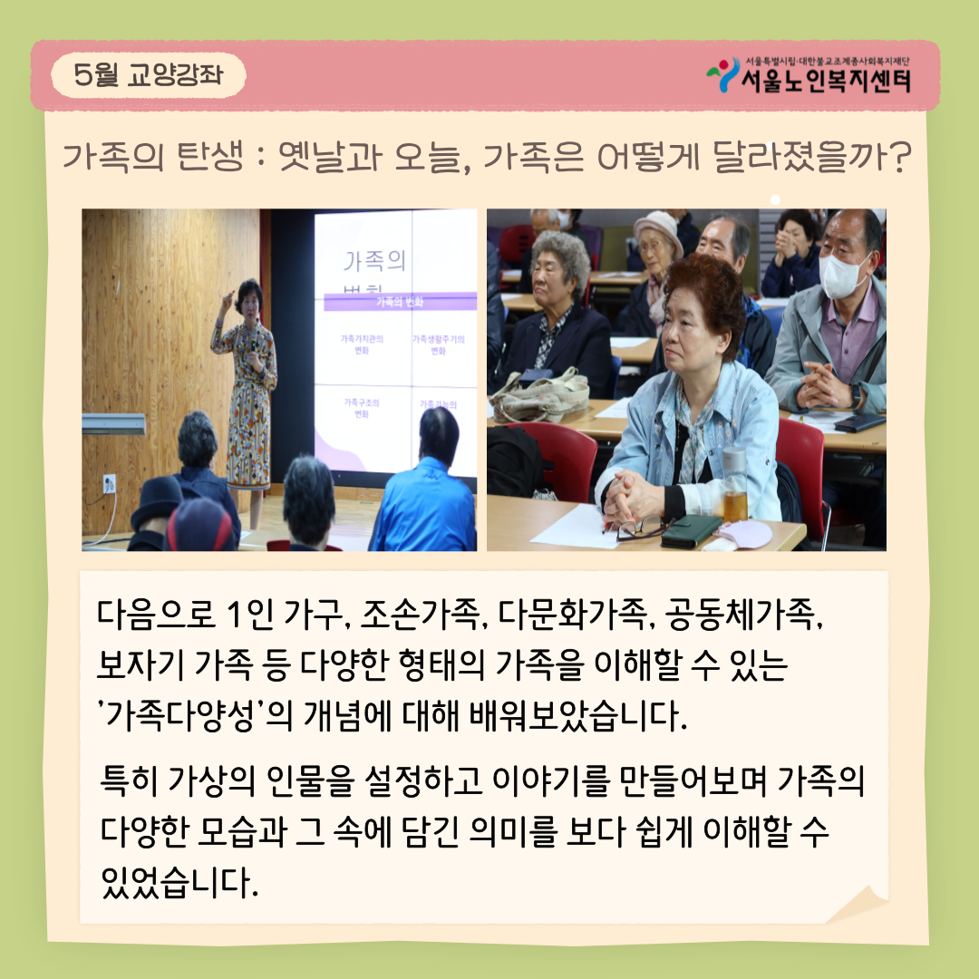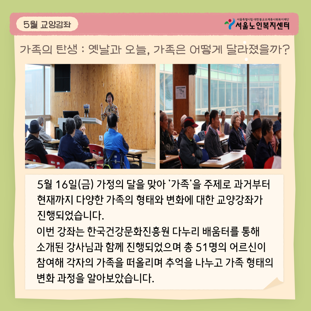 [평생교육팀] 5월 교양강좌 '가족의 탄생-옛날과 오늘, 가족은 어떻게 달라졌을까'