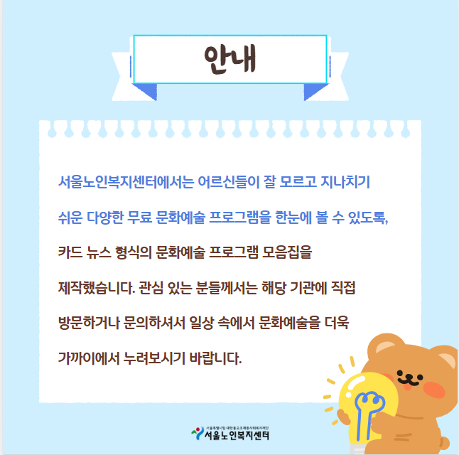 [평생교육팀] 서울노인복지센터가 추천하는 6월 문화예술 프로그램