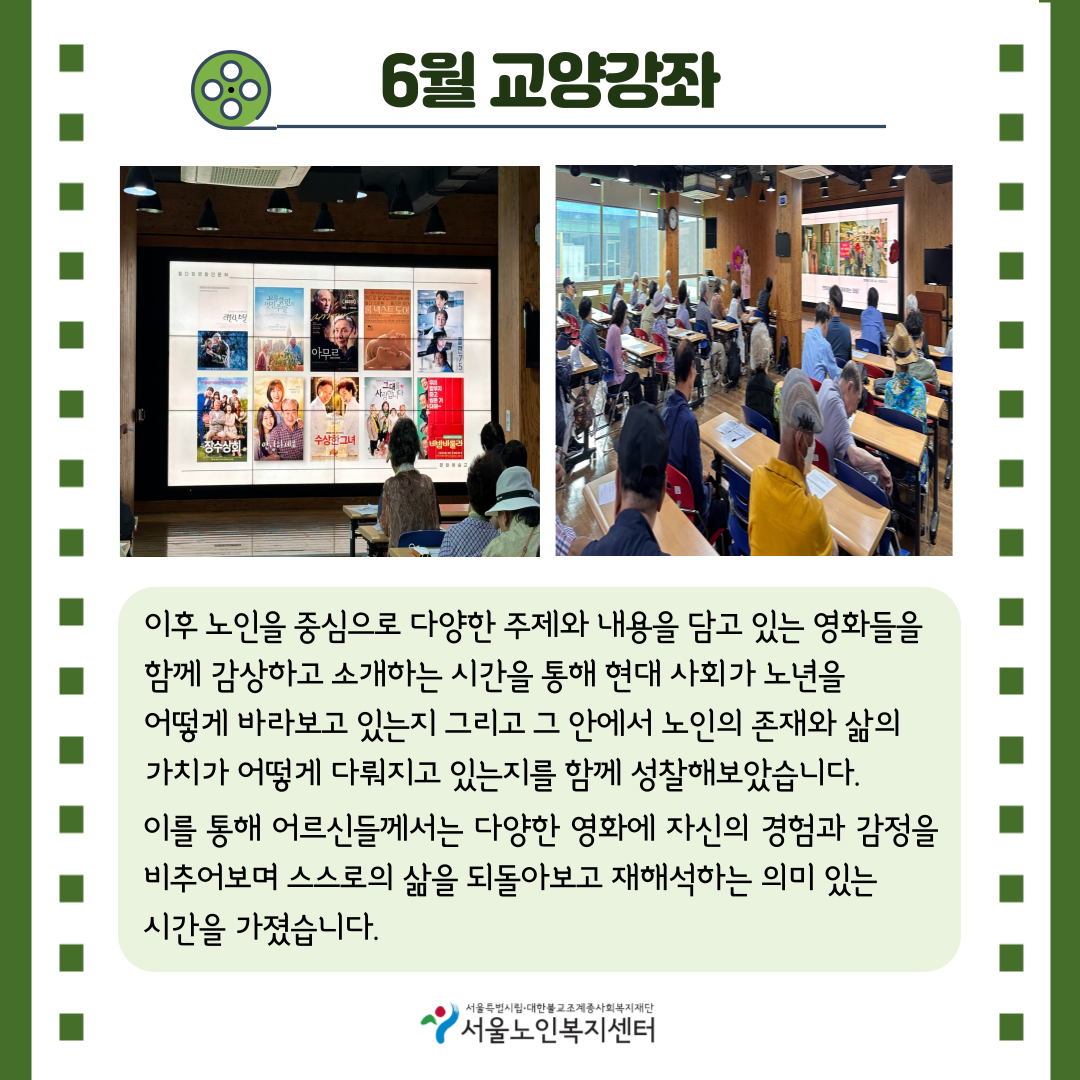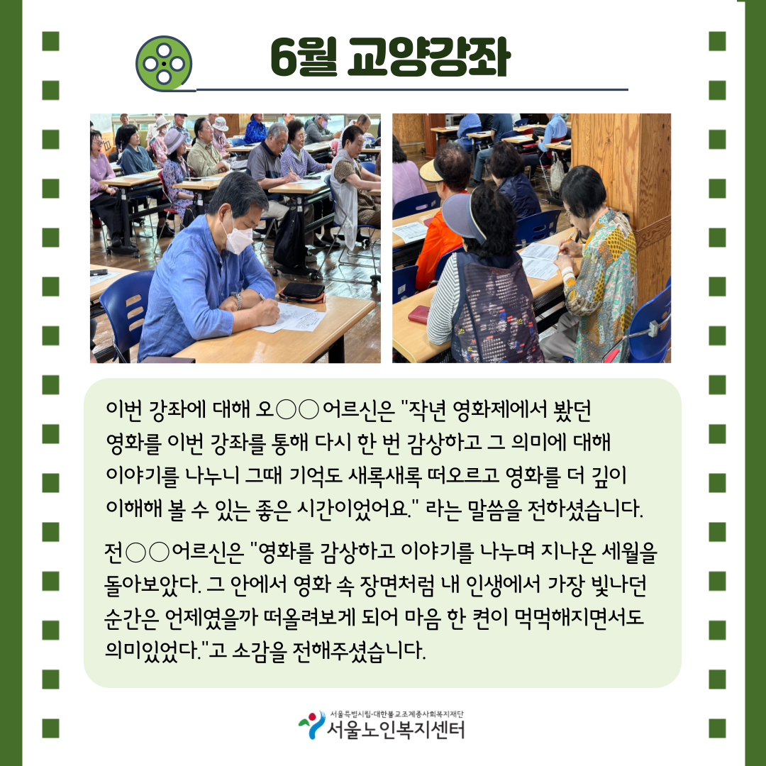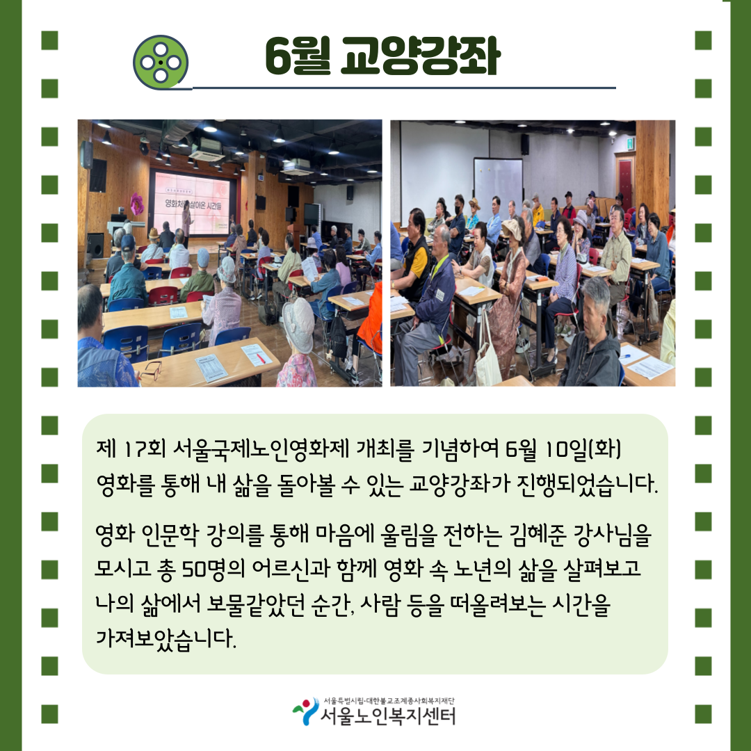 [평생교육팀] 6월 교양강좌 '내 인생의 명장면: 영화에서 인생의 보물을 찾다'